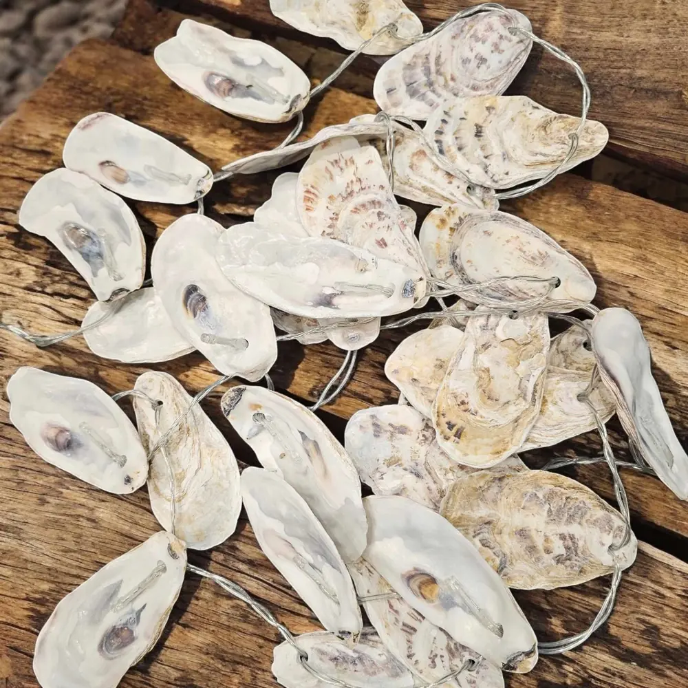 Product Description: Add a touch of coastal charm to your home with these stunning 3m LED Oyster Shell Lights. Handcrafted with care, each strand features 30 authentic oyster shells, sustainably sourced from the beautiful beaches of Whitstable on the Kent Coast. These spent shells have been lovingly upcycled into a unique lighting piece, making it a perfect eco-friendly addition to your decor.