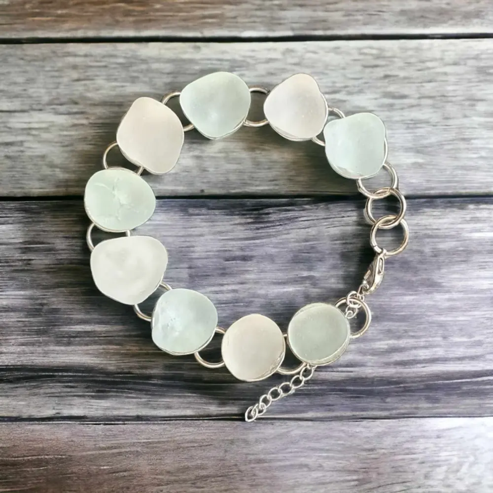 Beautiful Adjustable Sea foam green and Frosty white sea glass Tray bracelet.