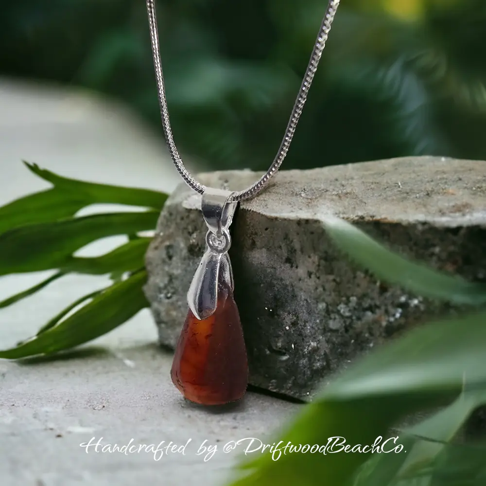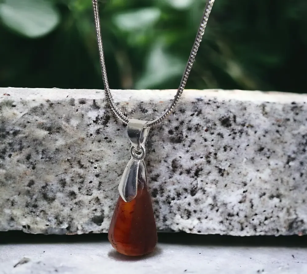 Beautiful rich coloured Amber Pendant. Genuine beachcombed Amber from the Kent Coast. Polished and handcrafted into this beautiful Pendant style necklace. 20″ Sterling Silver 925 chain and bail with a lobster style clasp.