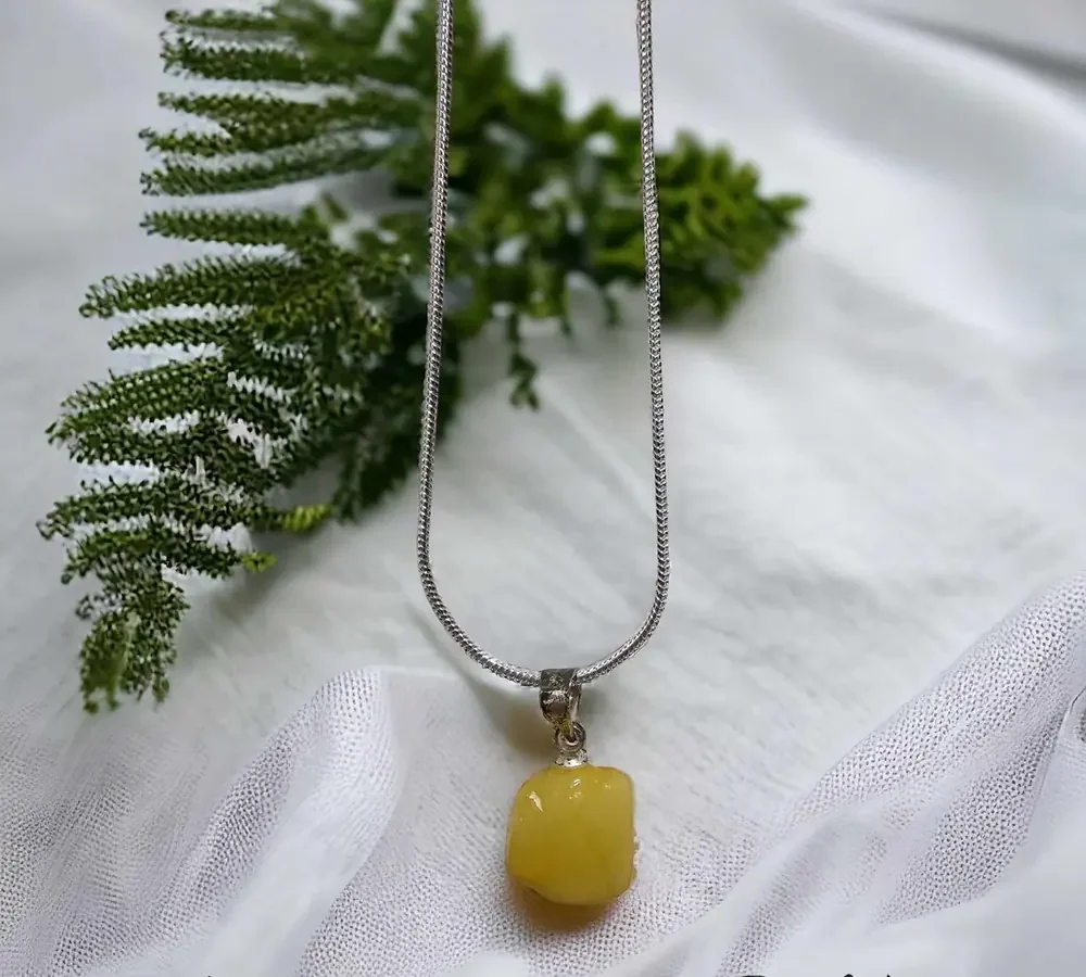 Beautiful Yellow Milky Amber Pendant. Genuine beachcombed Amber from the Kent Coast. Polished and handcrafted into this beautiful Pendant style necklace. 22″ Silver plated snake chain and bail with a lobster style clasp.