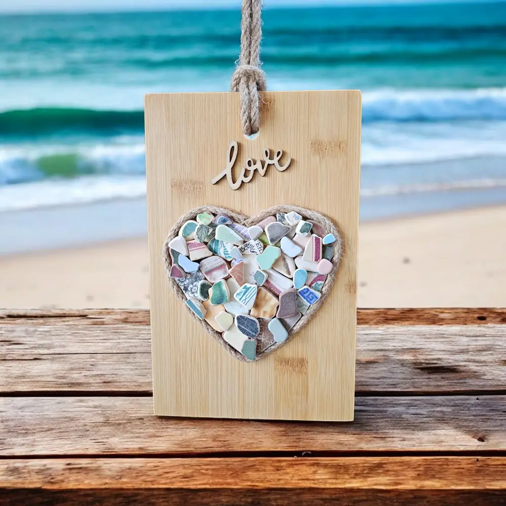 Beach Pottery Love Heart Wall Hanging π Handcrafted Coastal Charm π Add a touch of seaside magic to your home with this unique, handcrafted Beach Pottery Love Heart Wall Hanging. Made with care and creativity, this beautiful piece is crafted from sustainable materials, including a bamboo board, hand-picked beachcombed pottery shards from the Kent Coast, and finished with natural hemp rope for a rustic yet elegant touch…