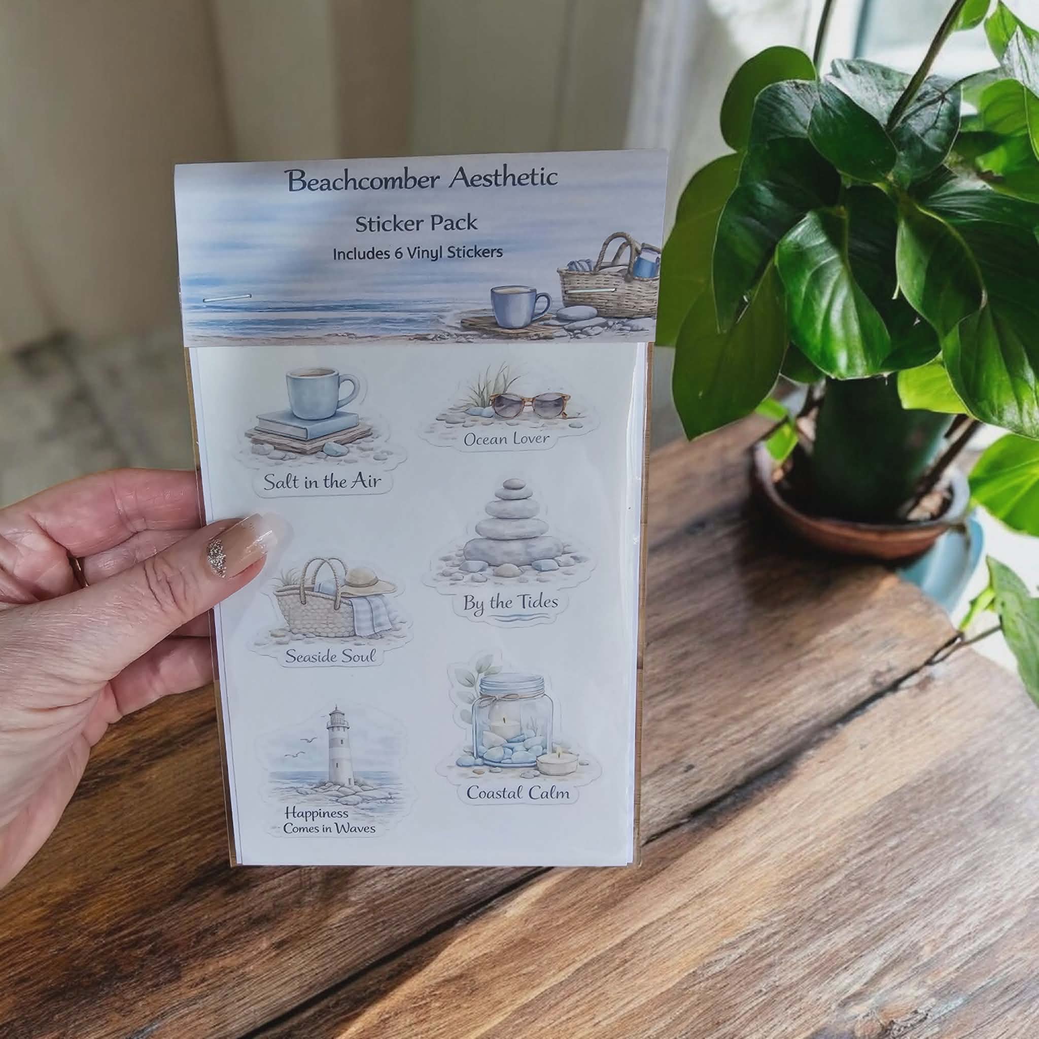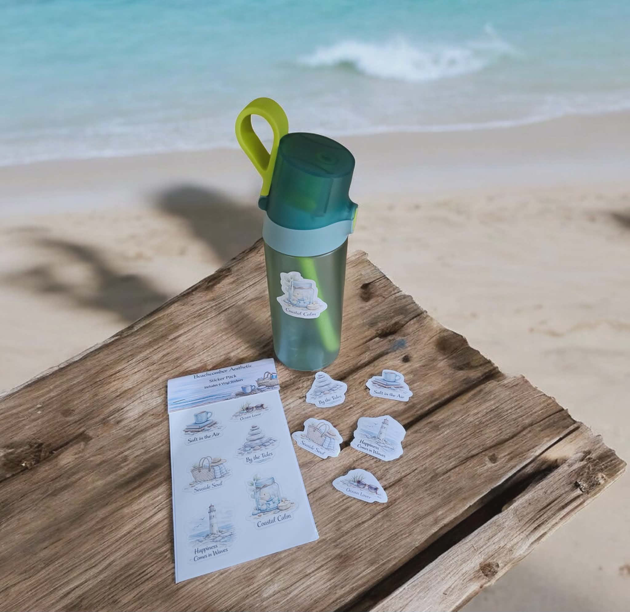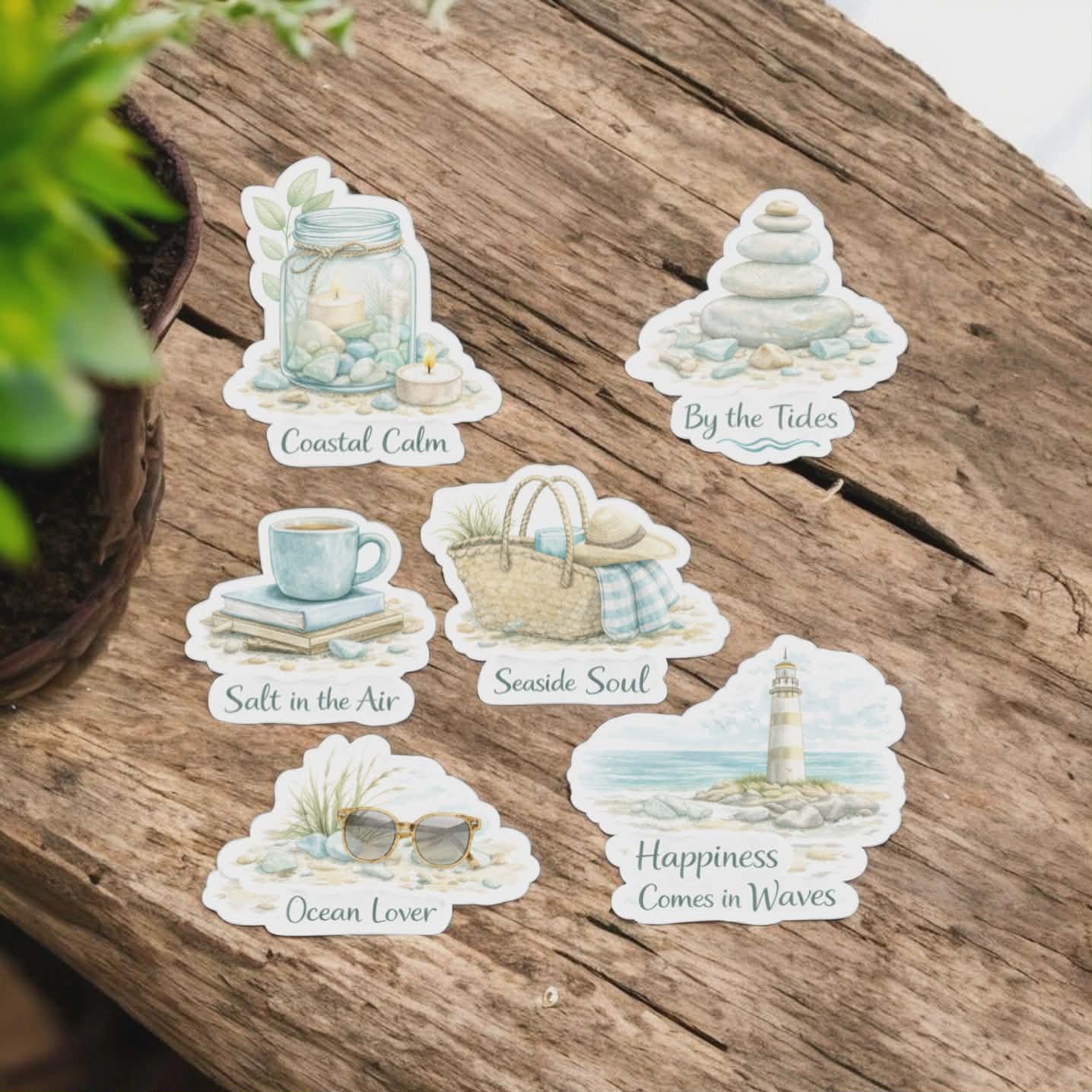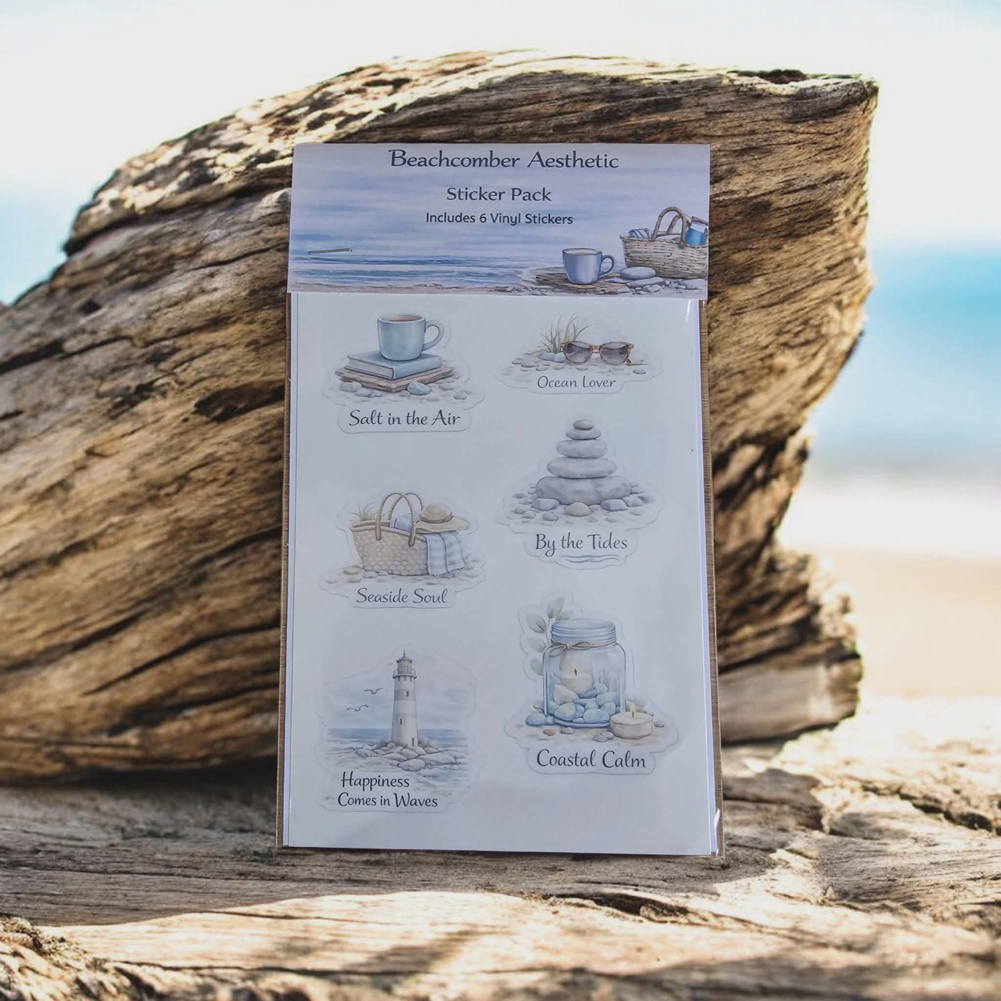 Beachcomber Aesthetic Sticker Pack, inspired by peaceful coastal moments and the gentle rhythms of the Kent shoreline. Designed in-house by DriftwoodBeachCo, this collection celebrates slow living, salty air, and the simple joy of being by the sea. Each sticker features soft watercolour artwork and calming coastal themes — perfect for anyone who feels most at home near the waves.