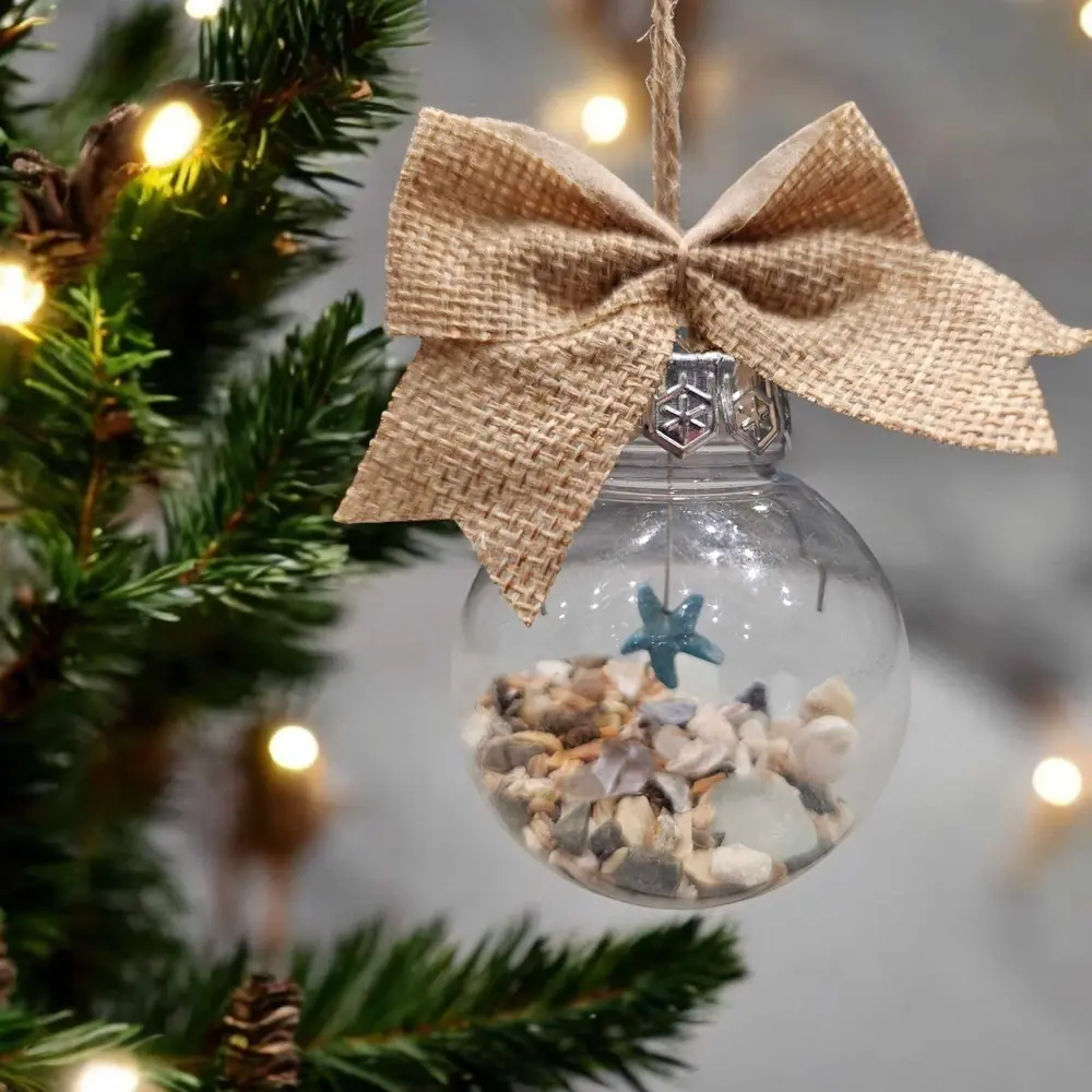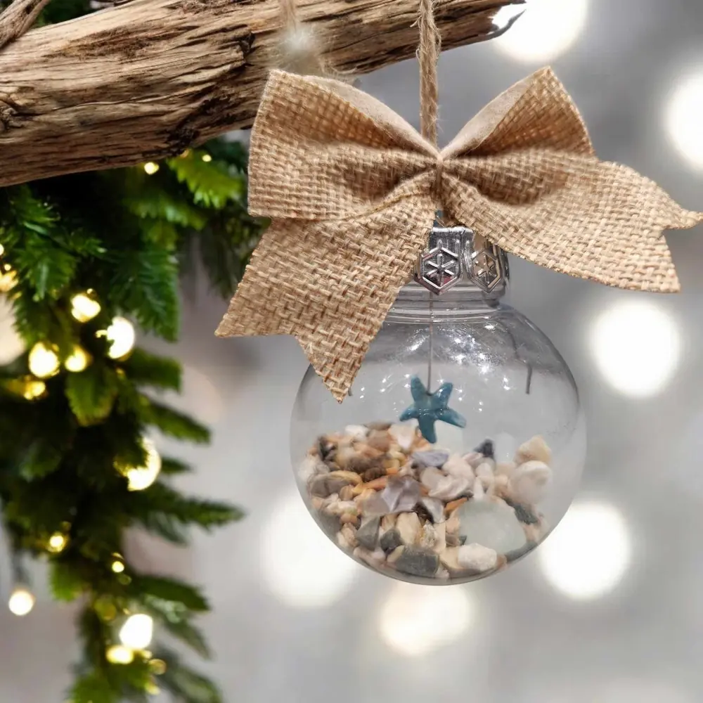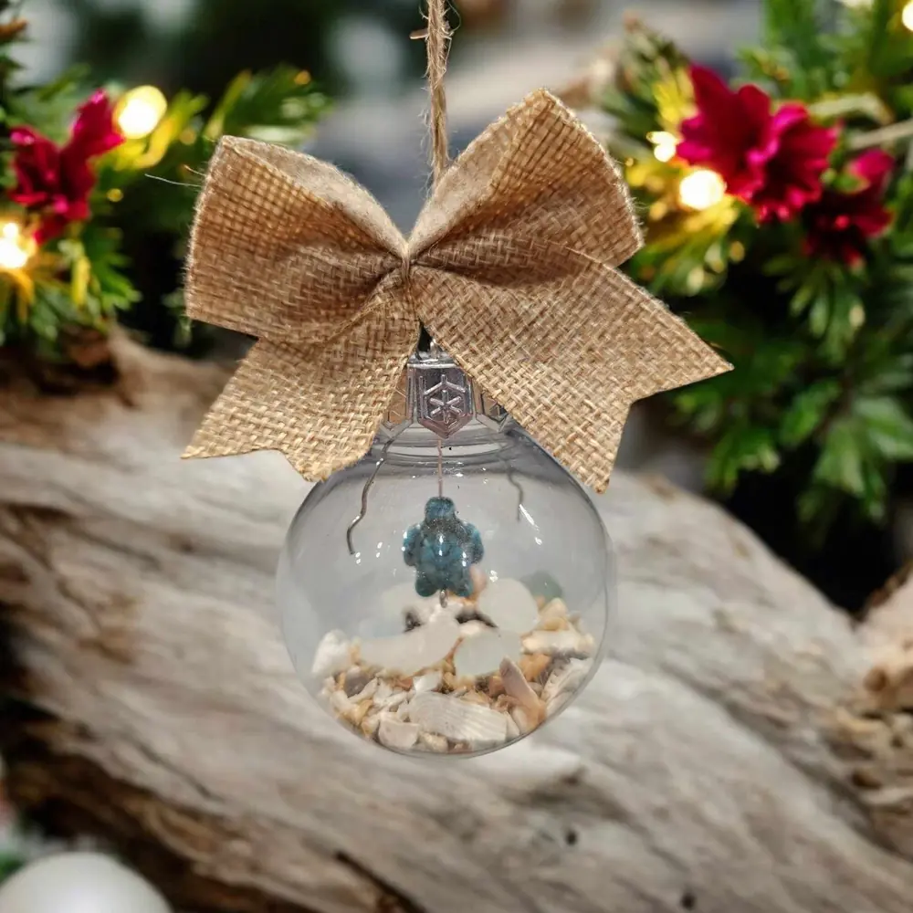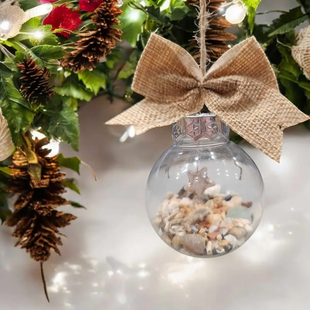 Bring a touch of the seaside to your Christmas tree! Our Christmas Beach Baubles are the perfect way to combine the festive spirit with memories of summer holidays by the sea. Each clear acrylic bauble is filled with a delightful mix of sand, seaglass, and seashells, evoking the serene beauty of the beach…