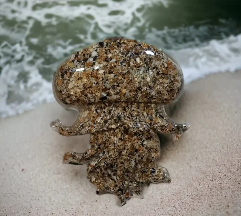 3D Resin Jellyfish. Resin encapsulated with sand to create these realistic Jellyfish wall art hanging.