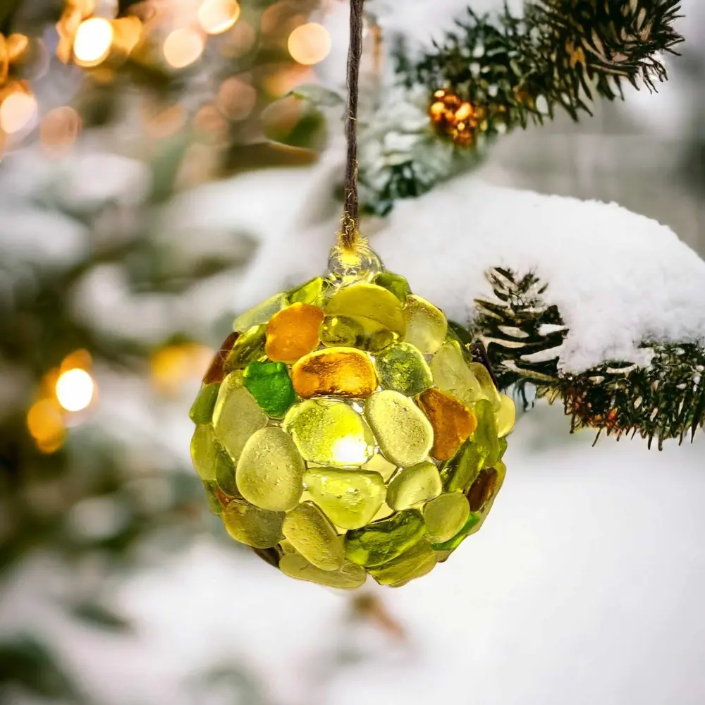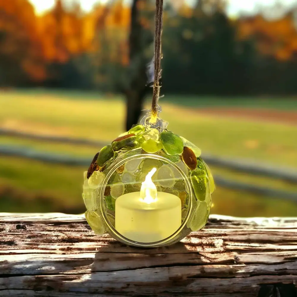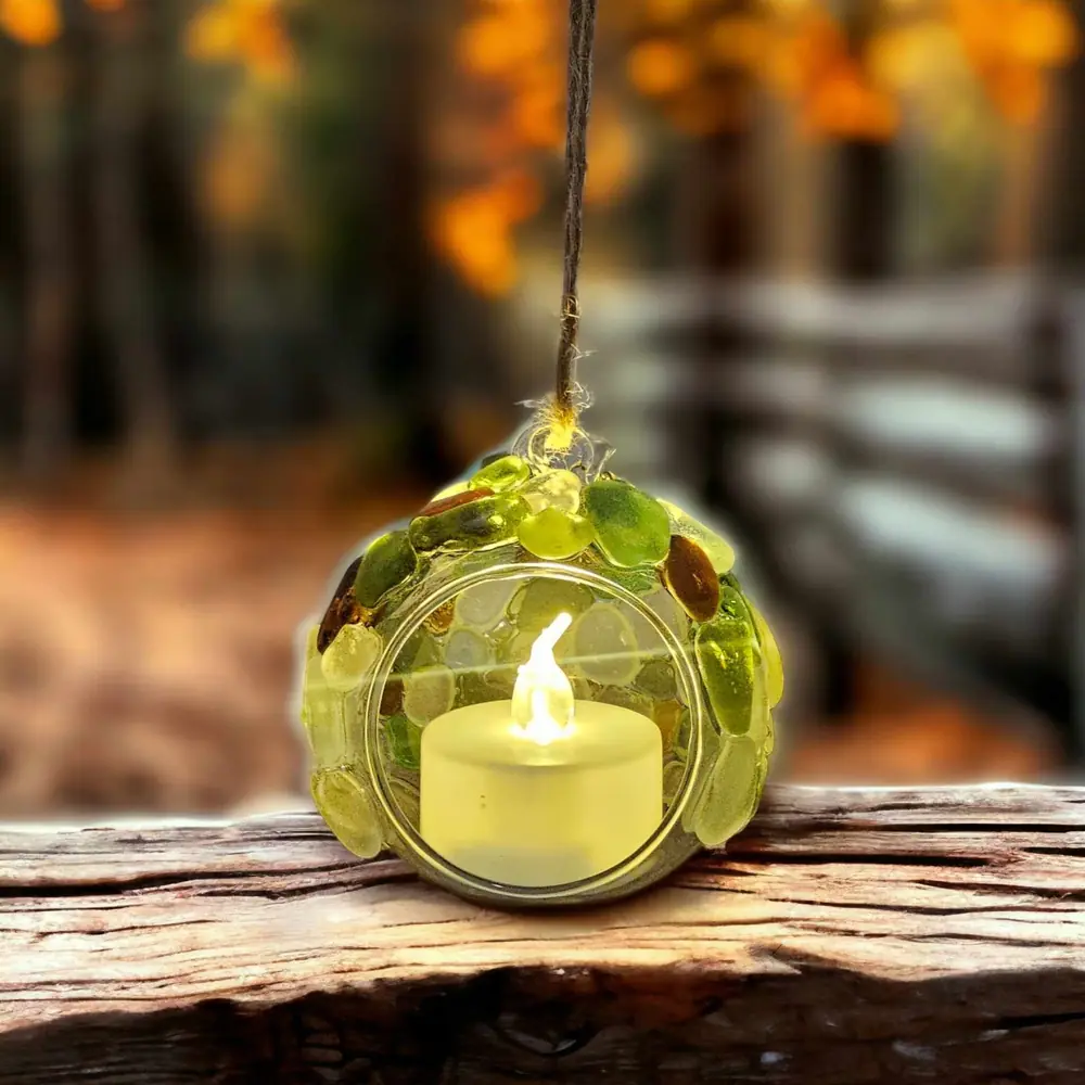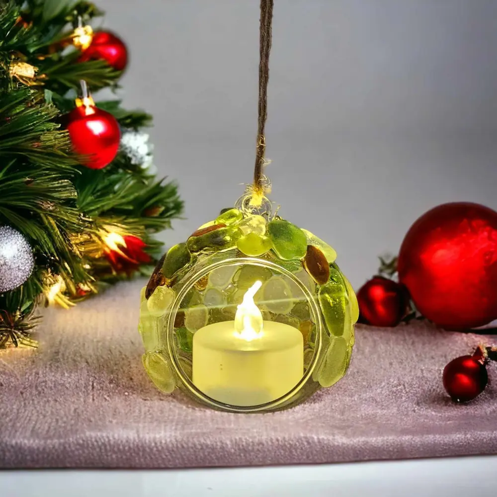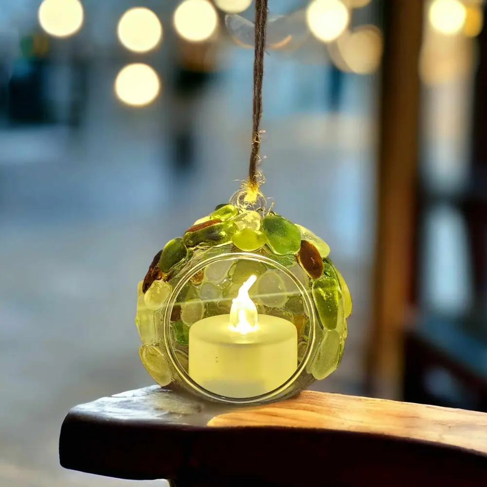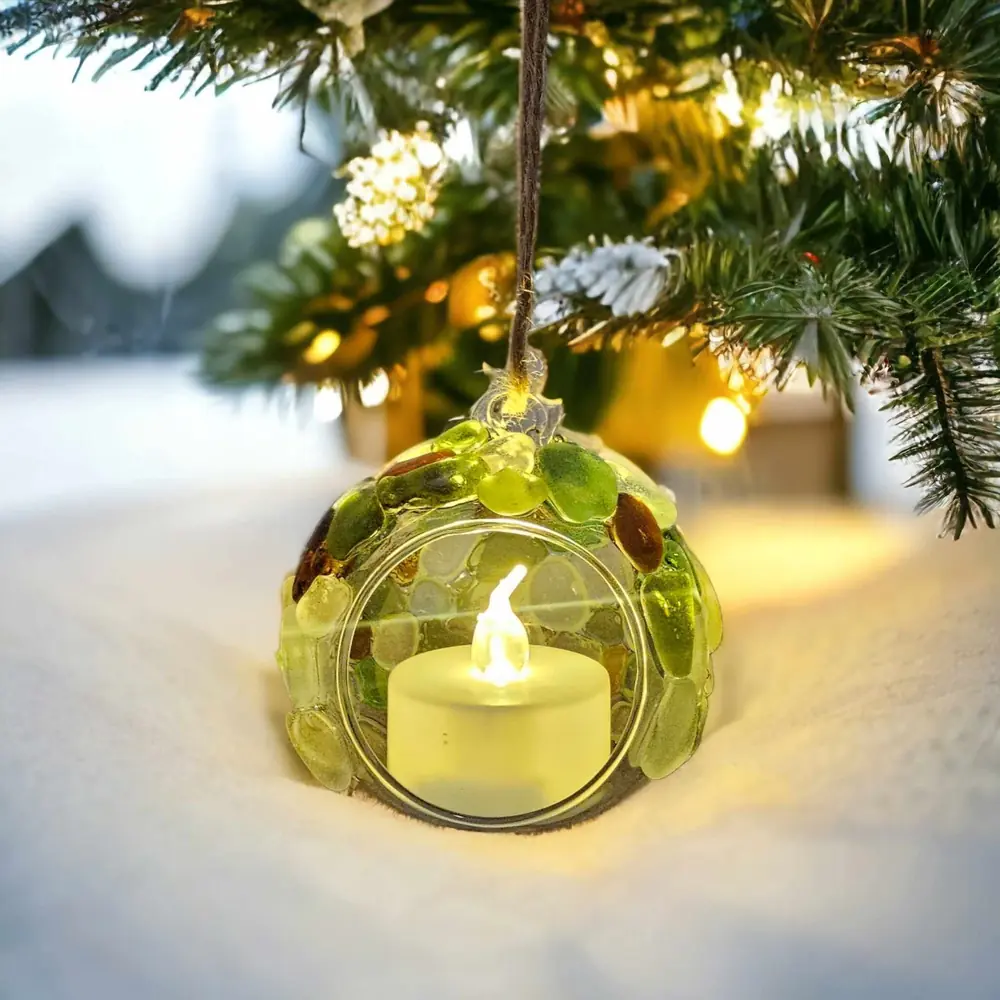 Add a touch of coastal charm to your Christmas tree with this light-up seaglass Christmas tree ornament hanging T-Light holder.