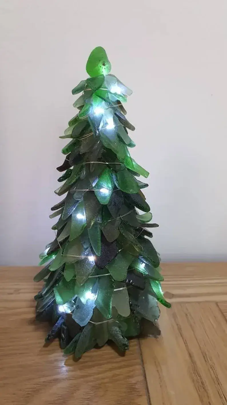 Beautiful handcrafted genuine sea glass tree with LED Lights.