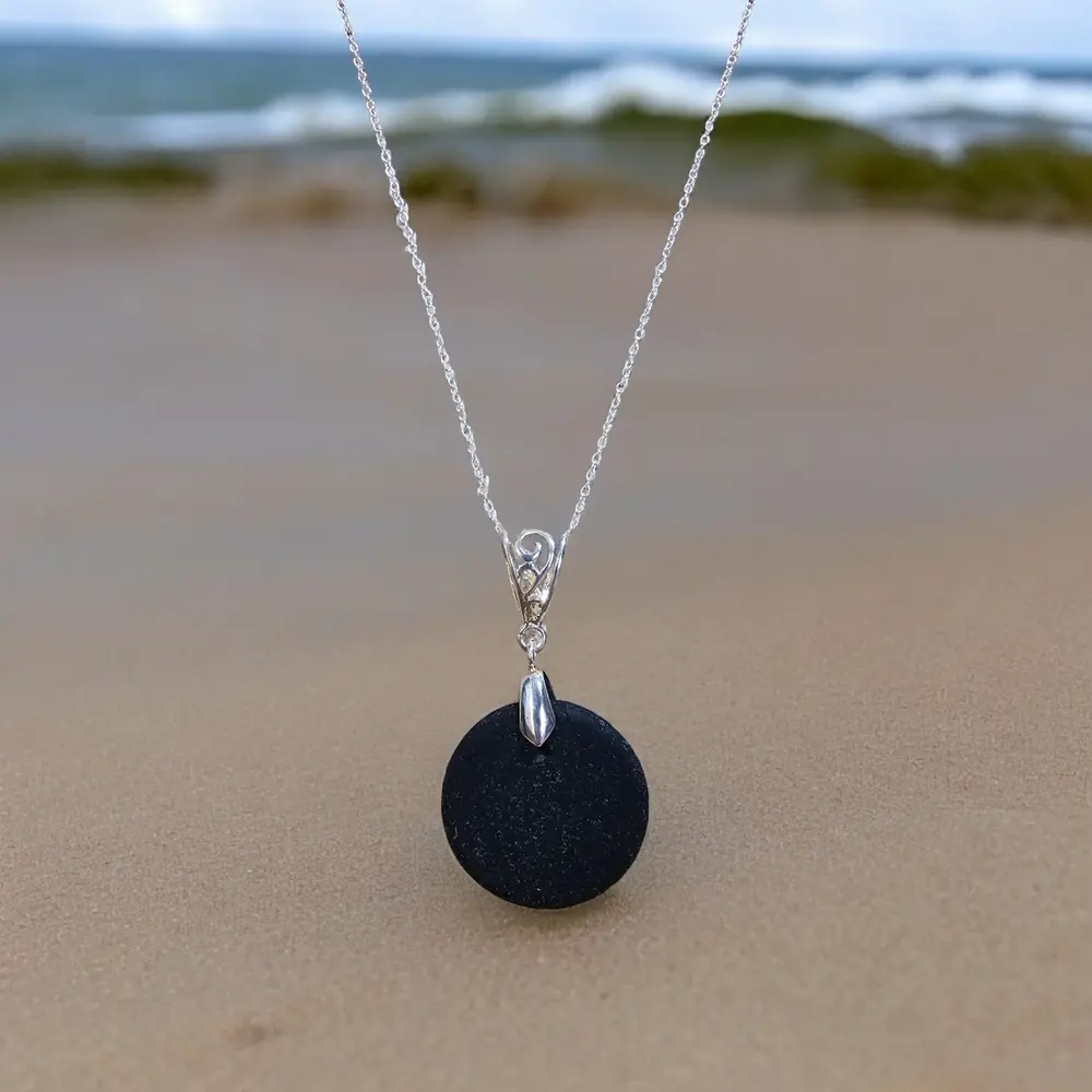 Elevate your style with our Black Seaglass Necklace—a timeless treasure from the sea that captures the beauty of nature and the charm of coastal living.