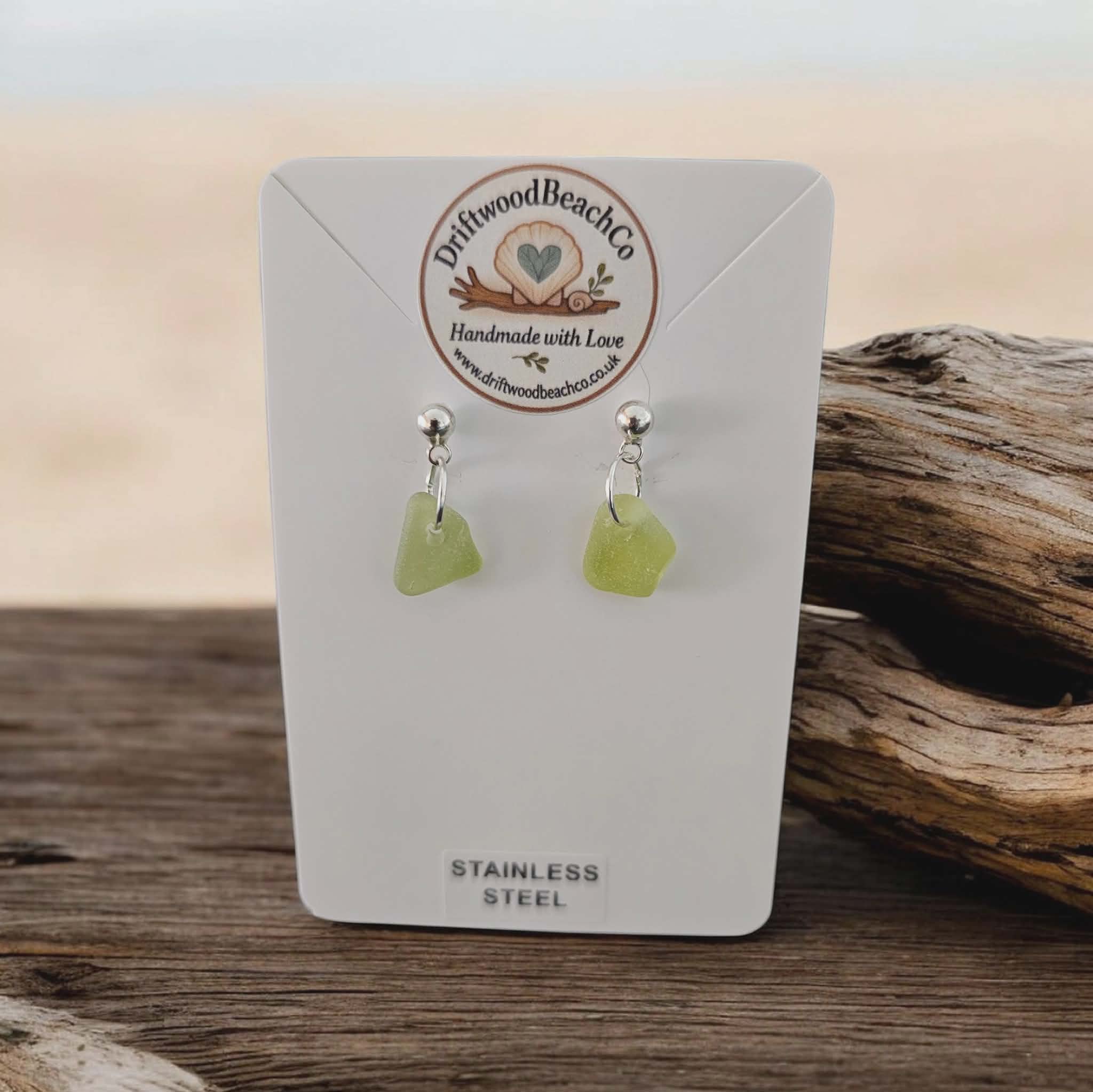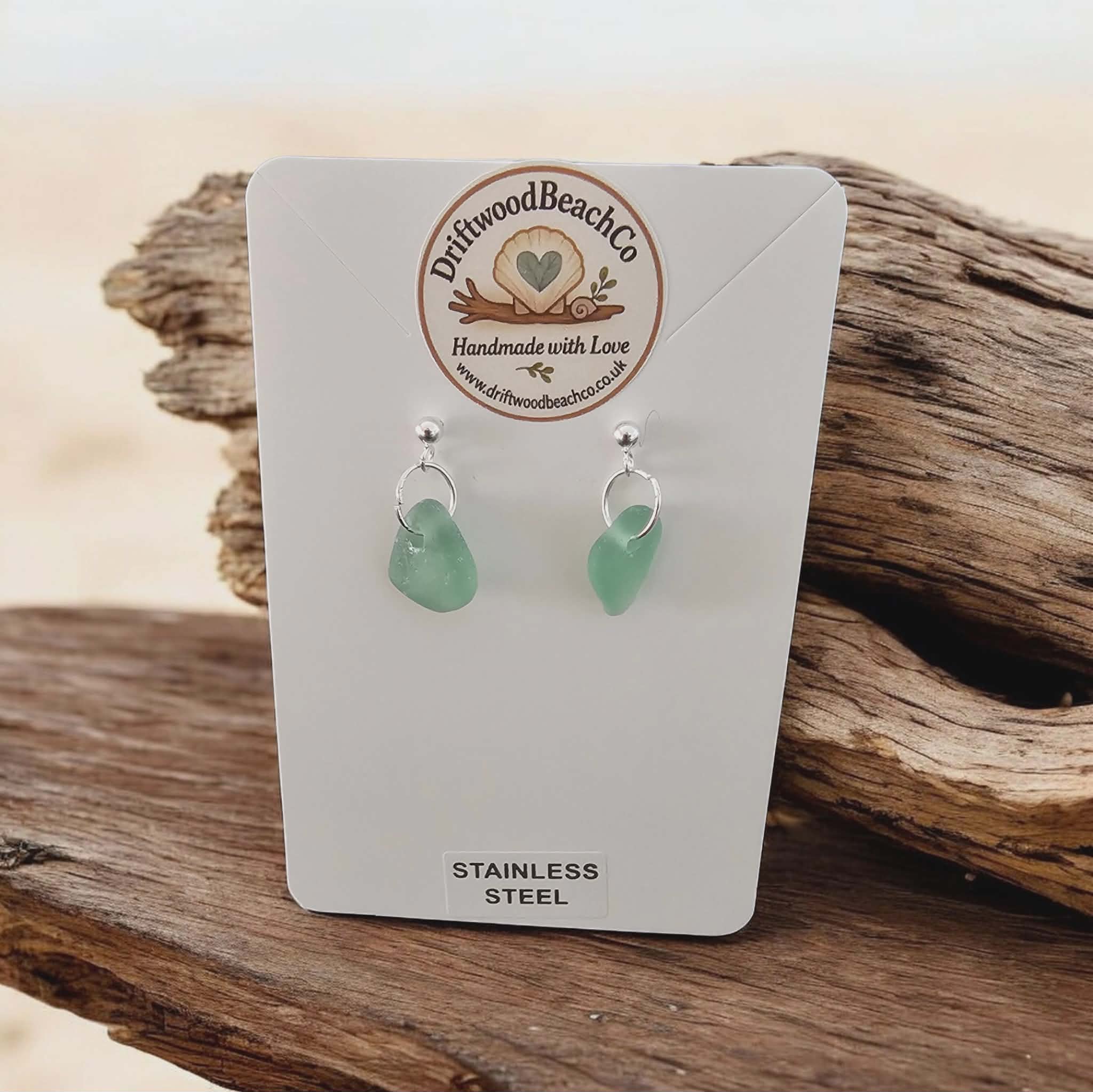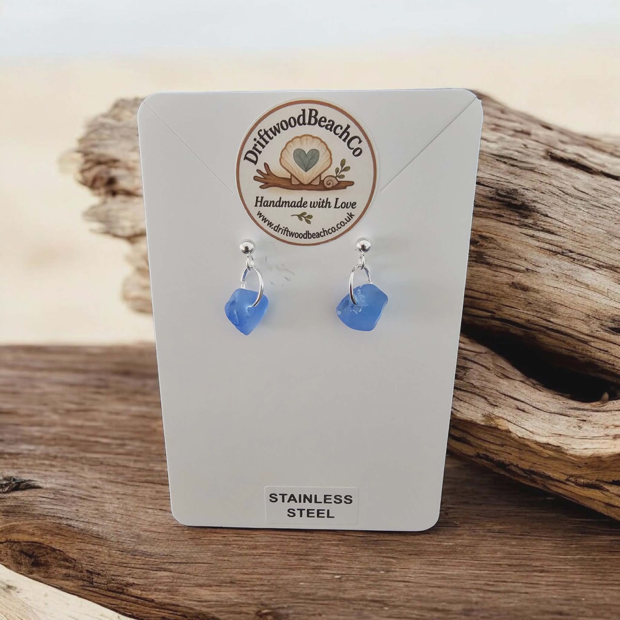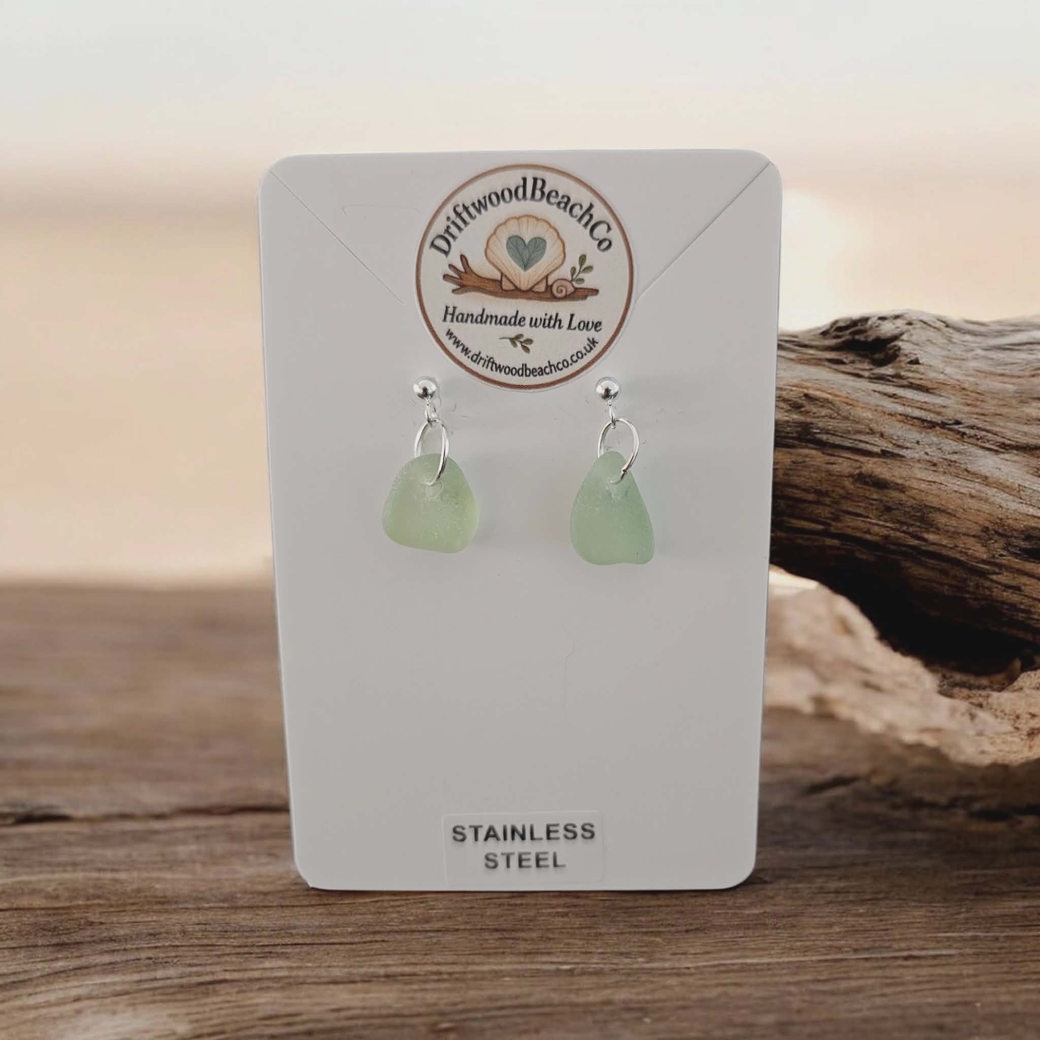 Stainless Steel Sea Glass Drop Stud Earrings – Handmade in Kent Bring a little piece of the ocean with you.