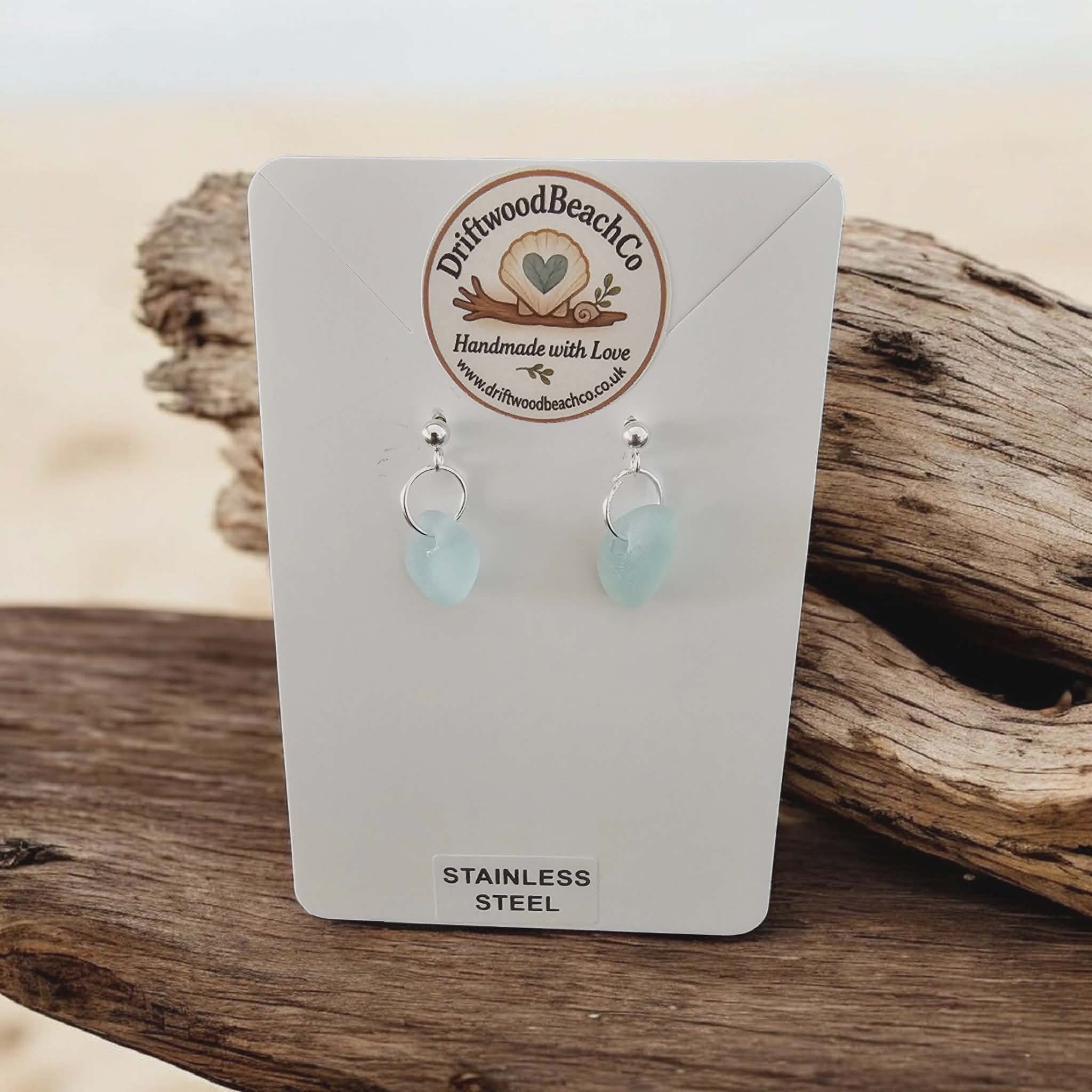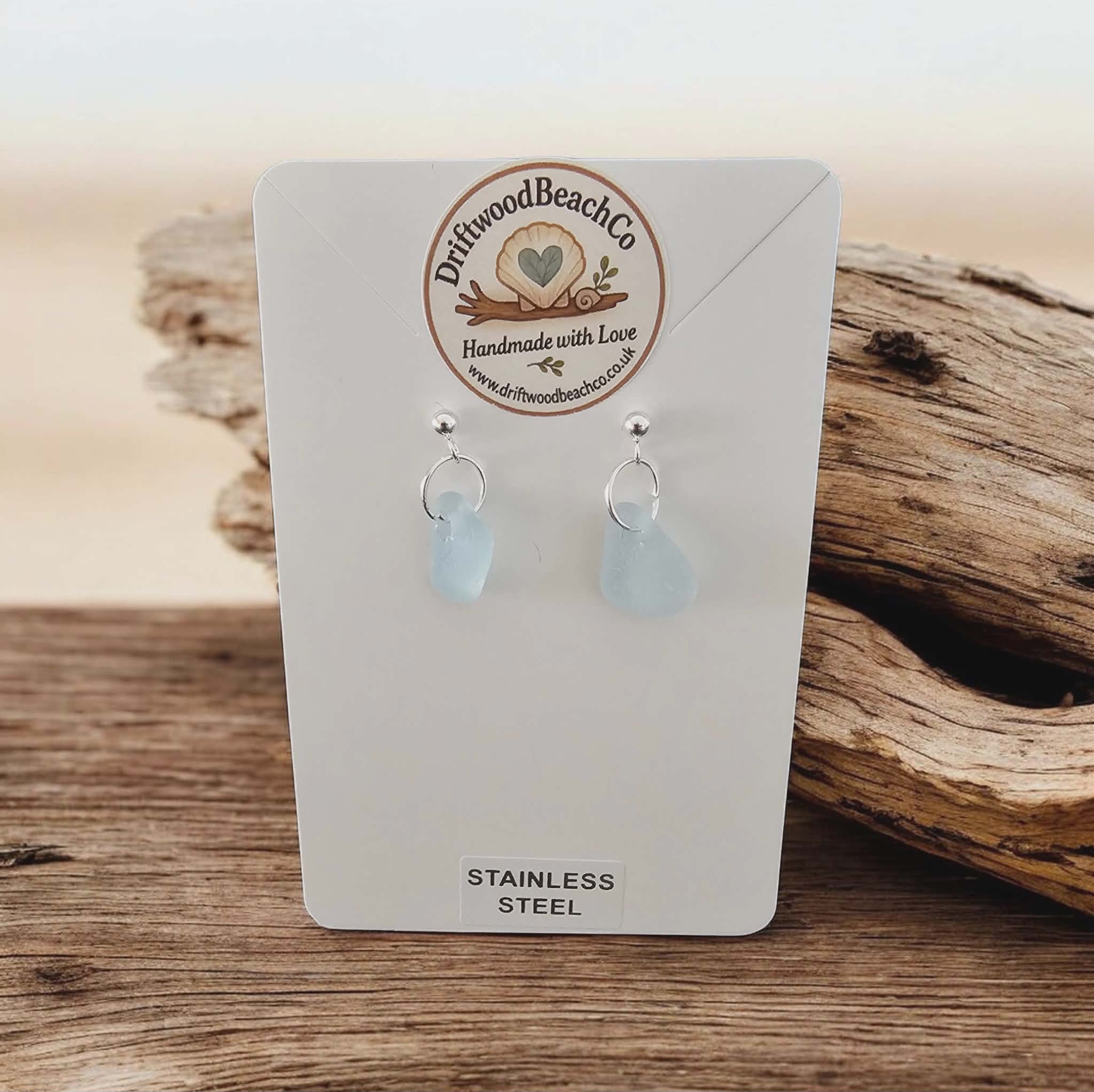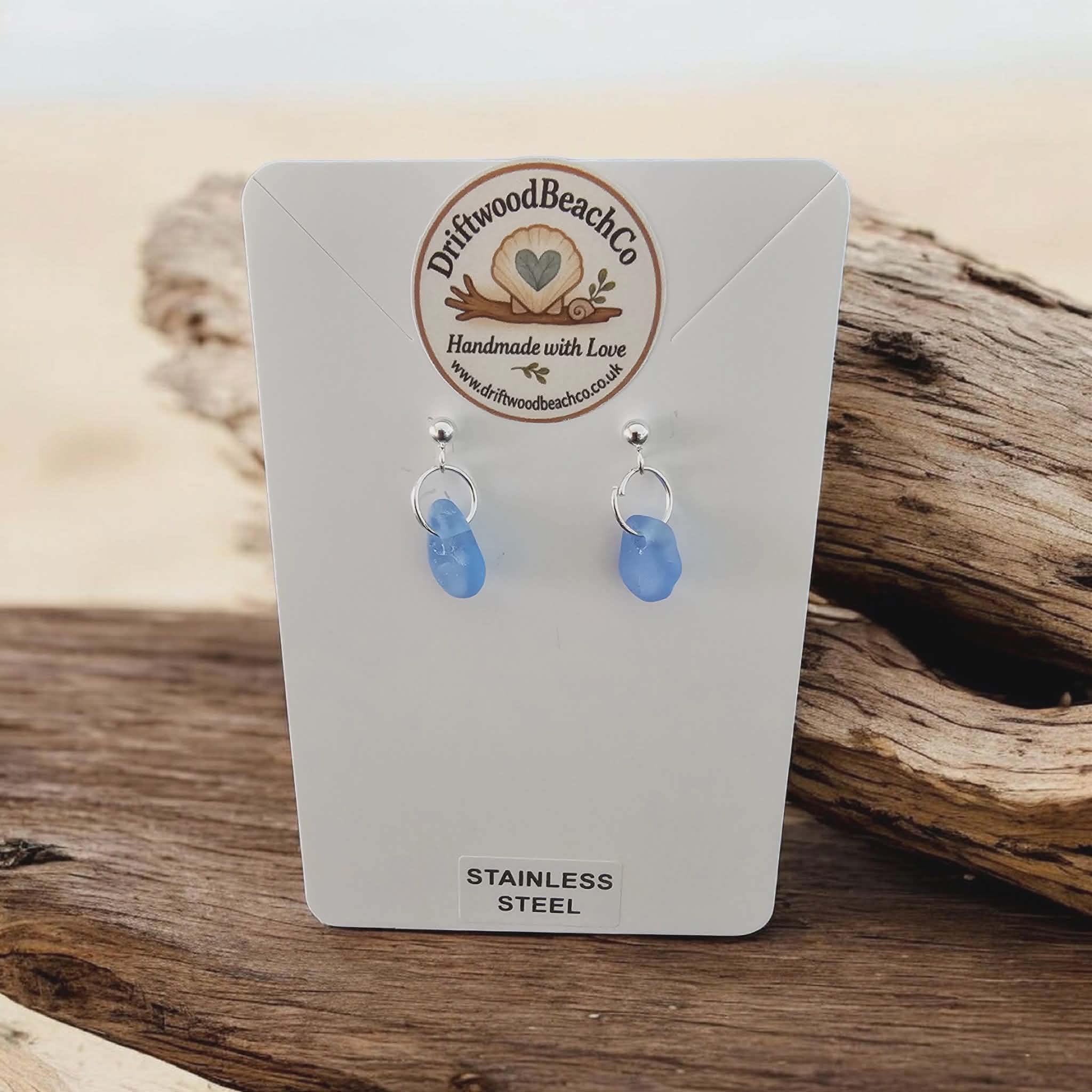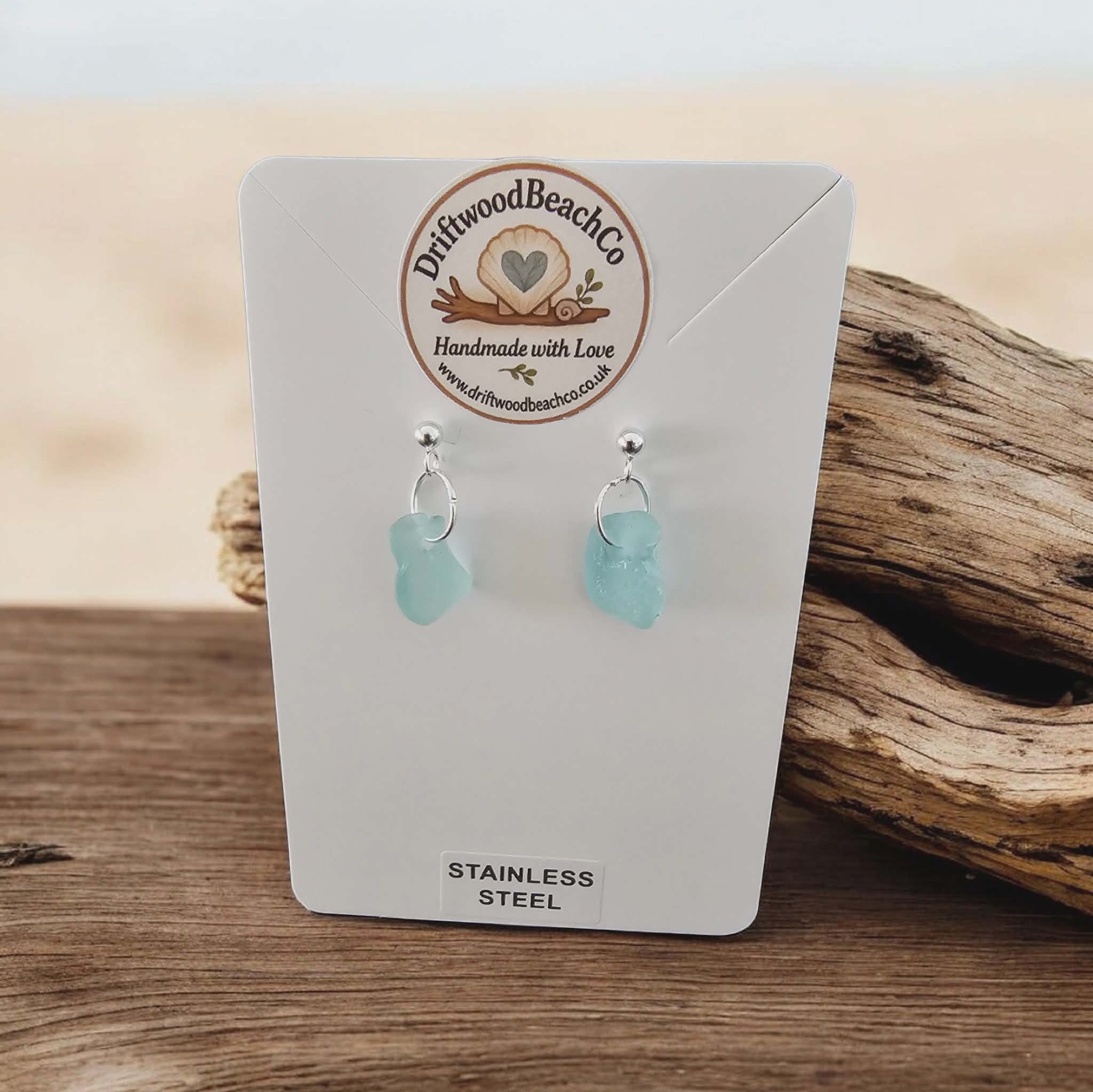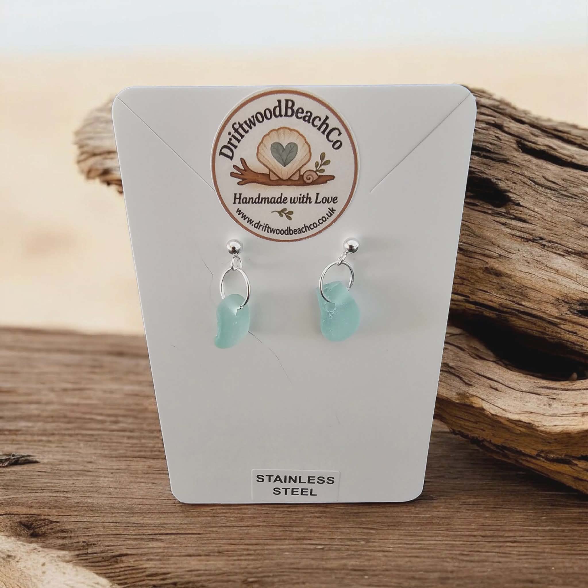 Stainless Steel Sea Glass Drop Stud Earrings – Handmade in Kent Bring a little piece of the ocean with you.