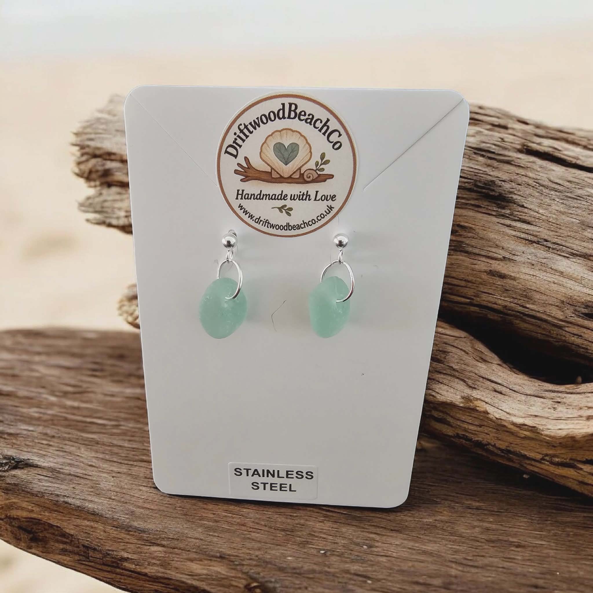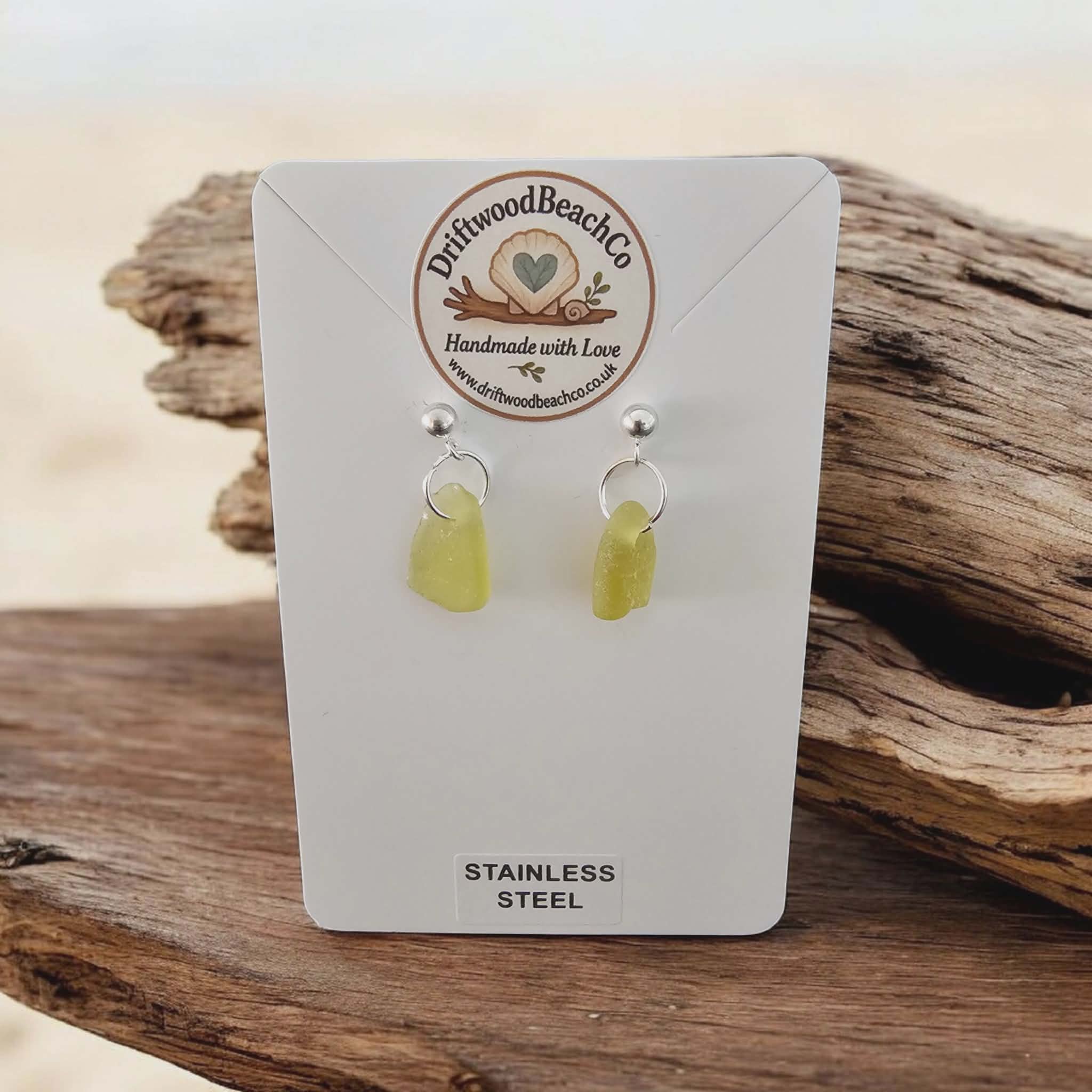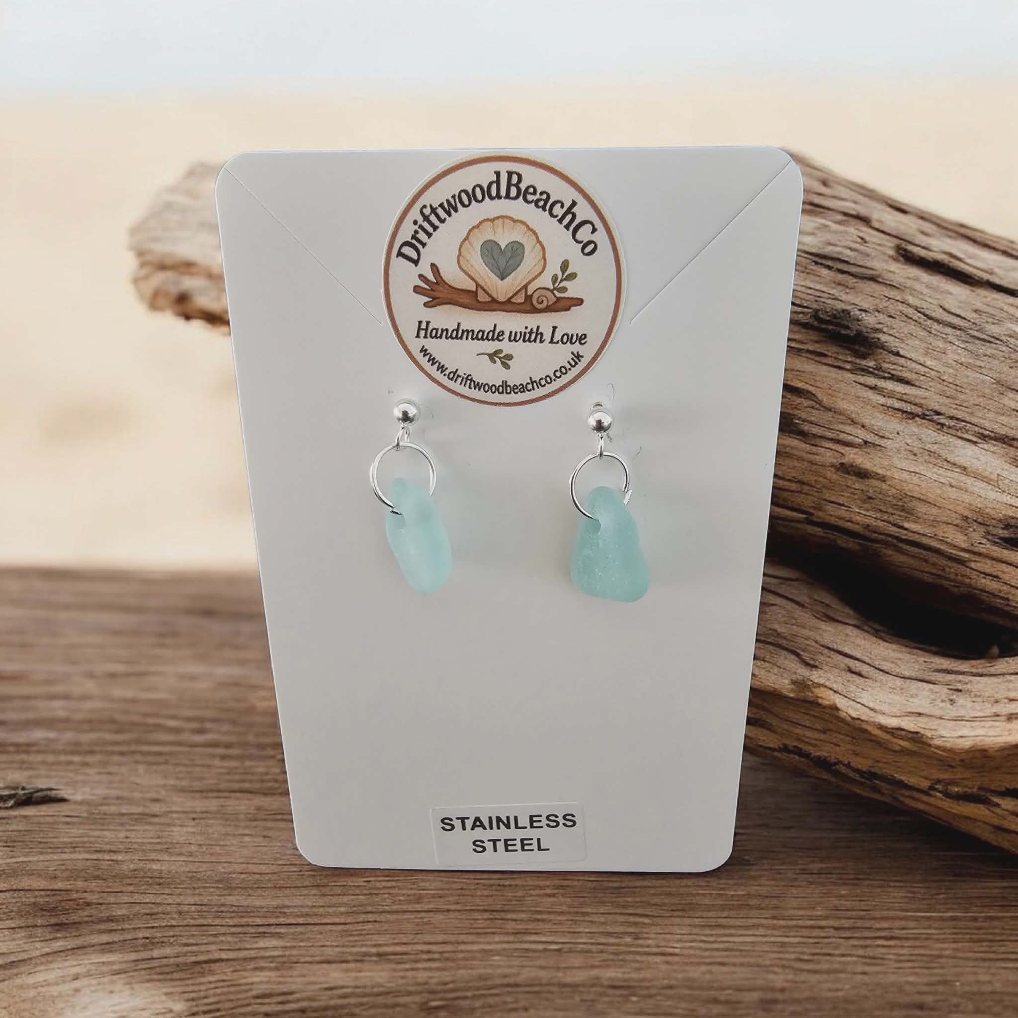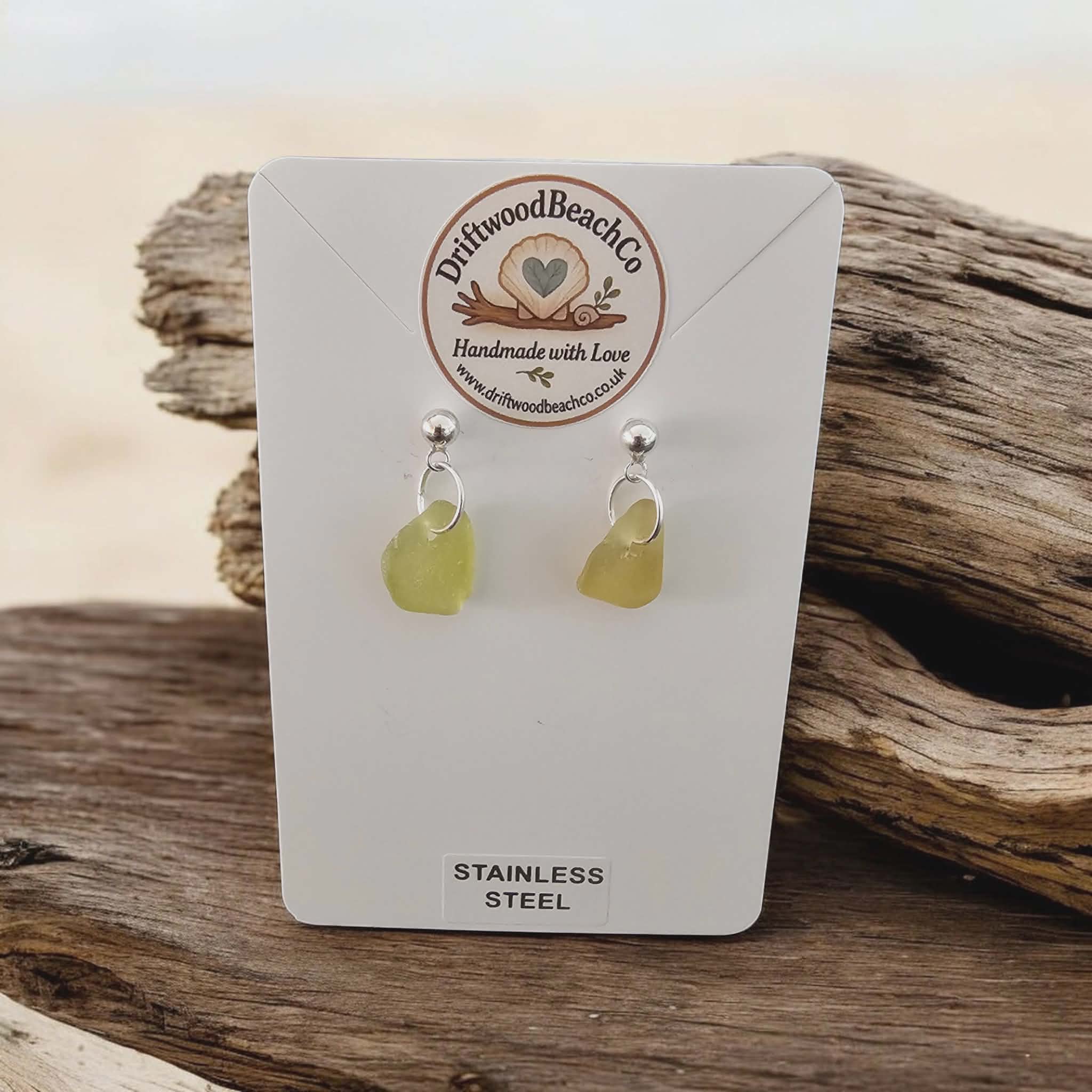 Stainless Steel Sea Glass Drop Stud Earrings – Handmade in Kent Bring a little piece of the ocean with you.