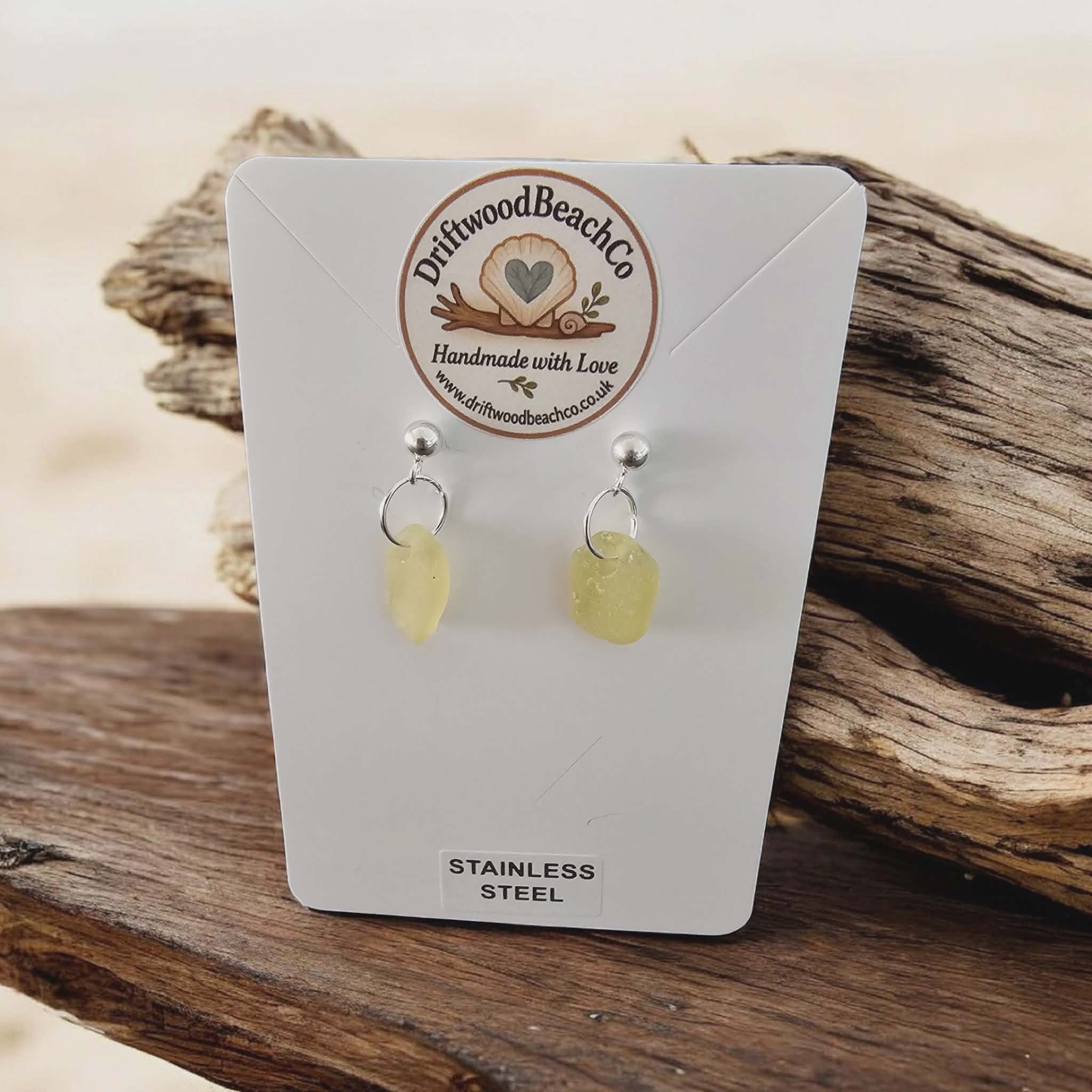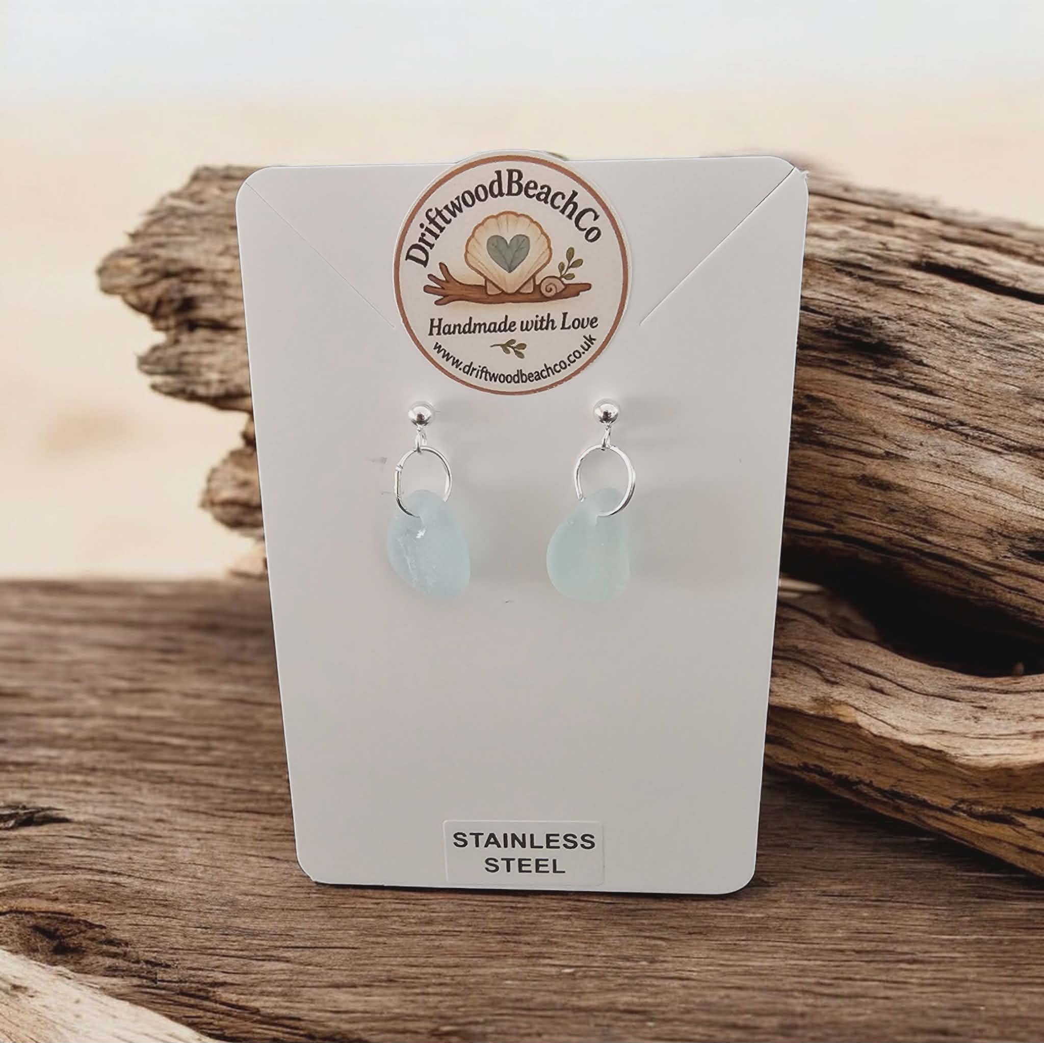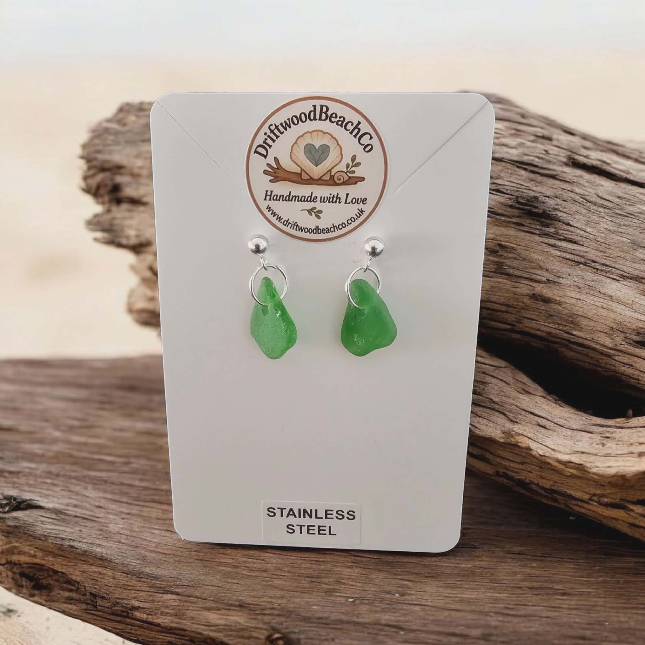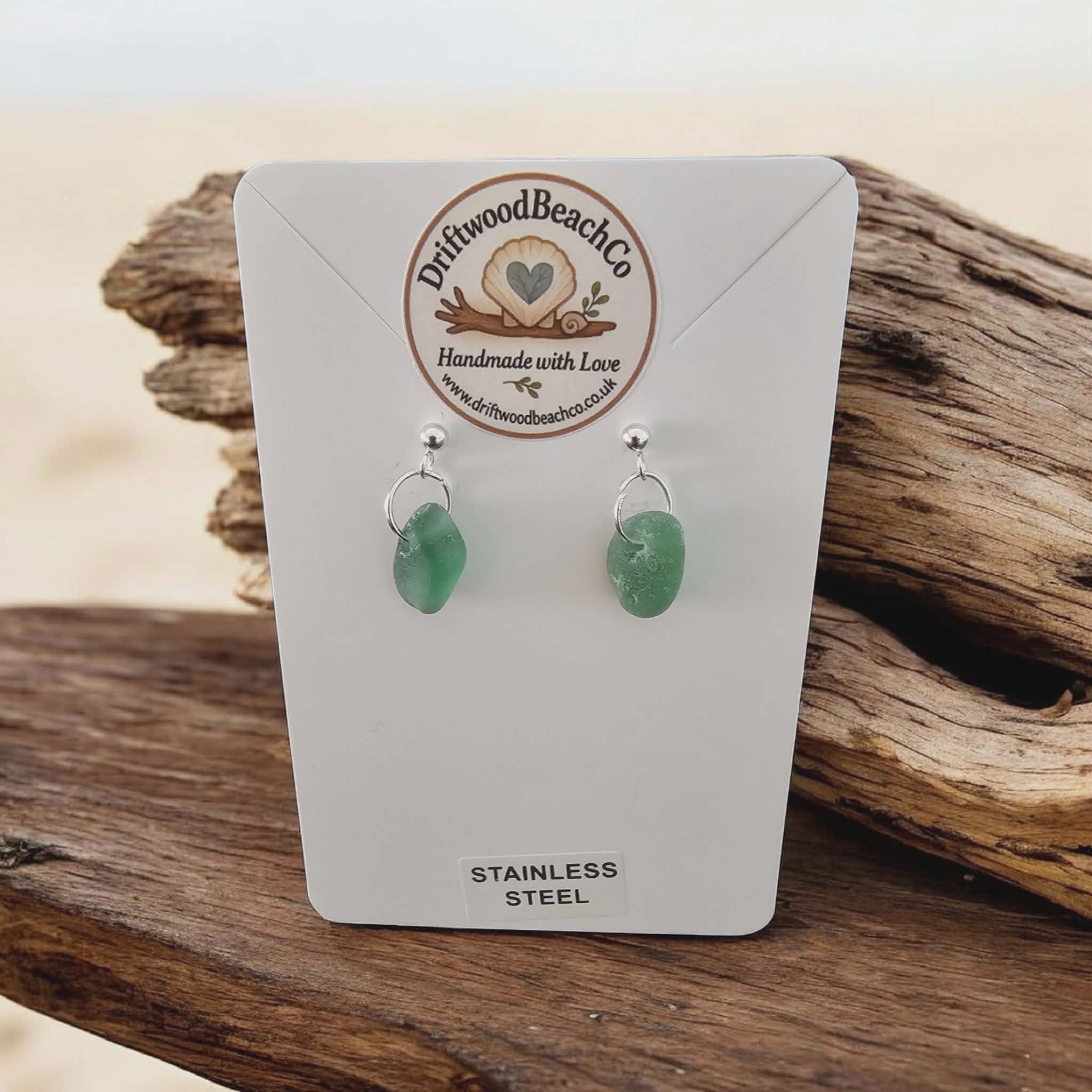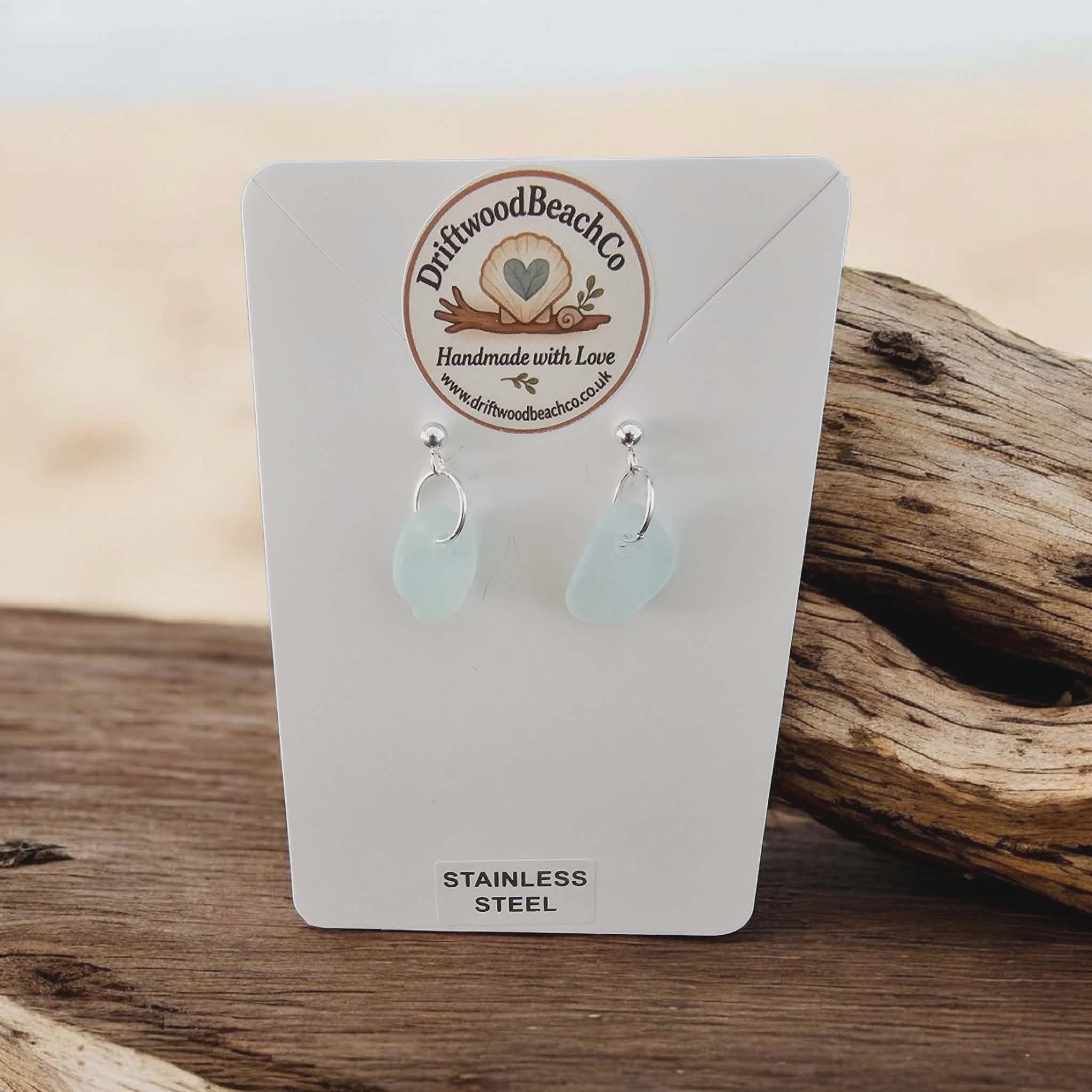 Stainless Steel Sea Glass Drop Stud Earrings – Handmade in Kent Bring a little piece of the ocean with you.