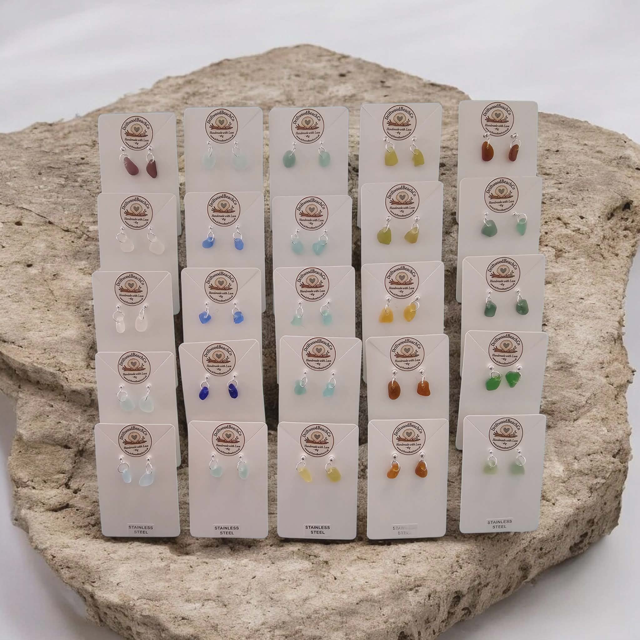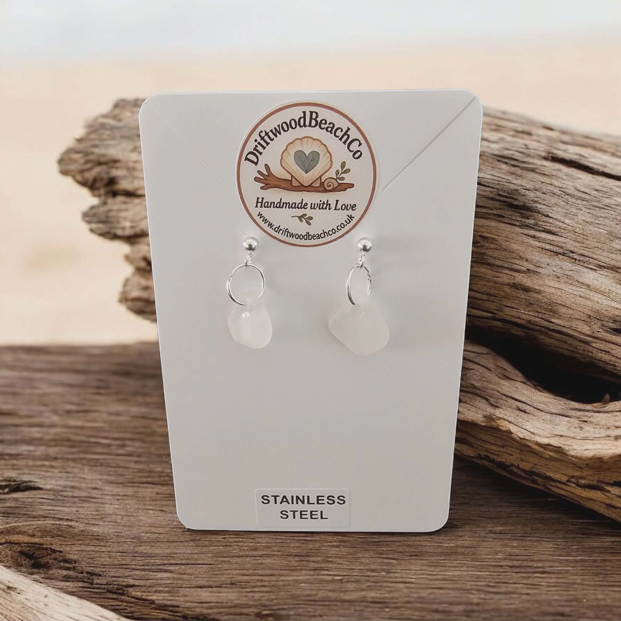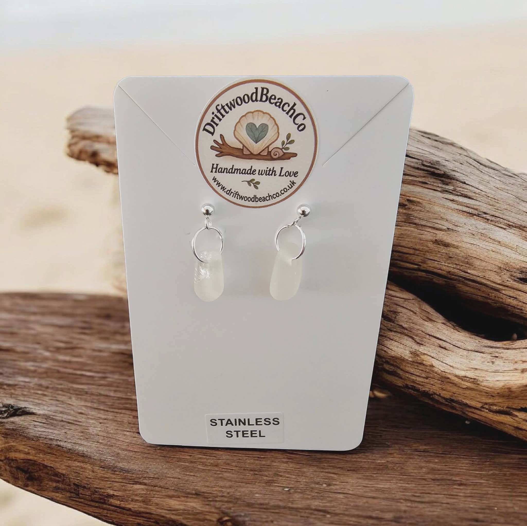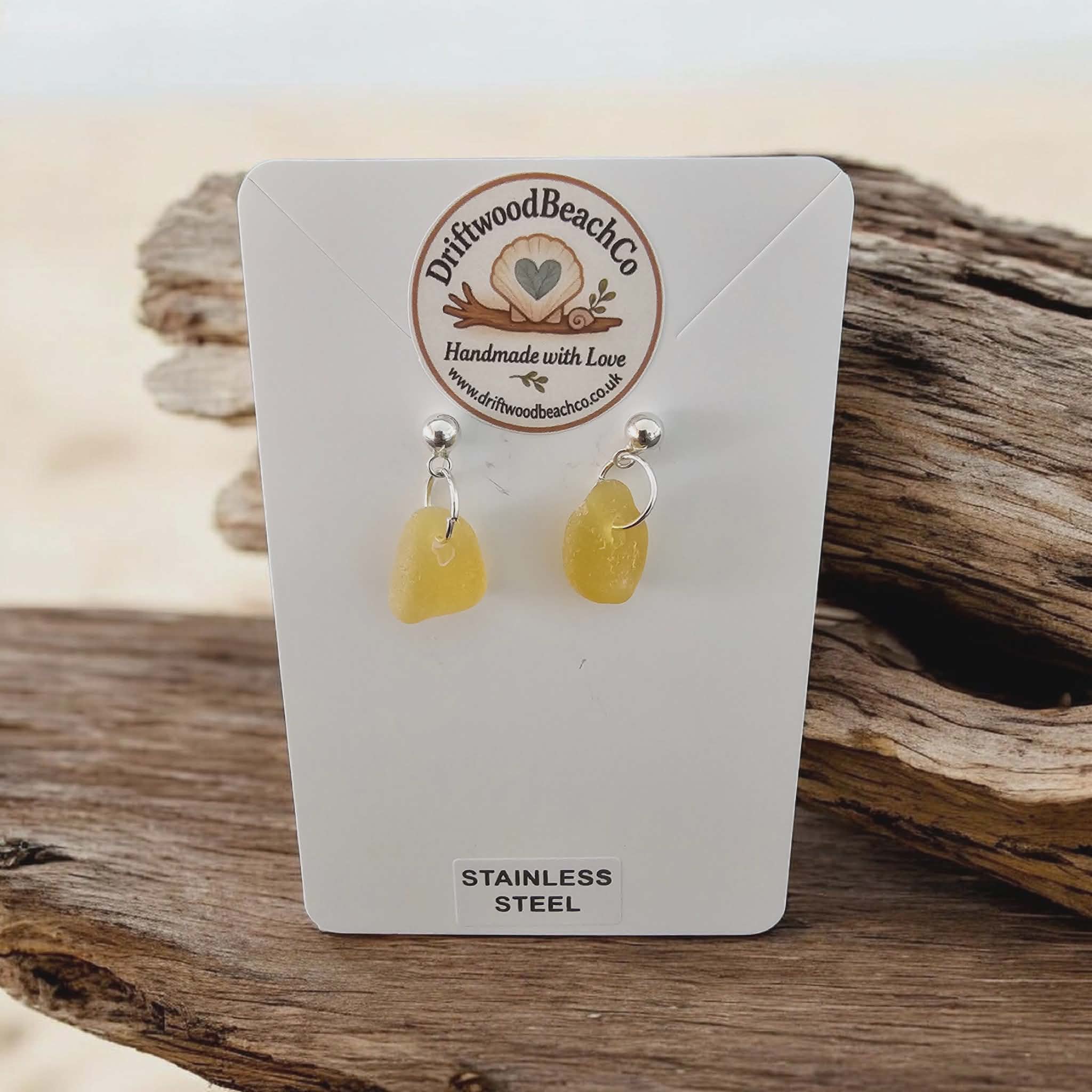 Stainless Steel Sea Glass Drop Stud Earrings – Handmade in Kent Bring a little piece of the ocean with you.
