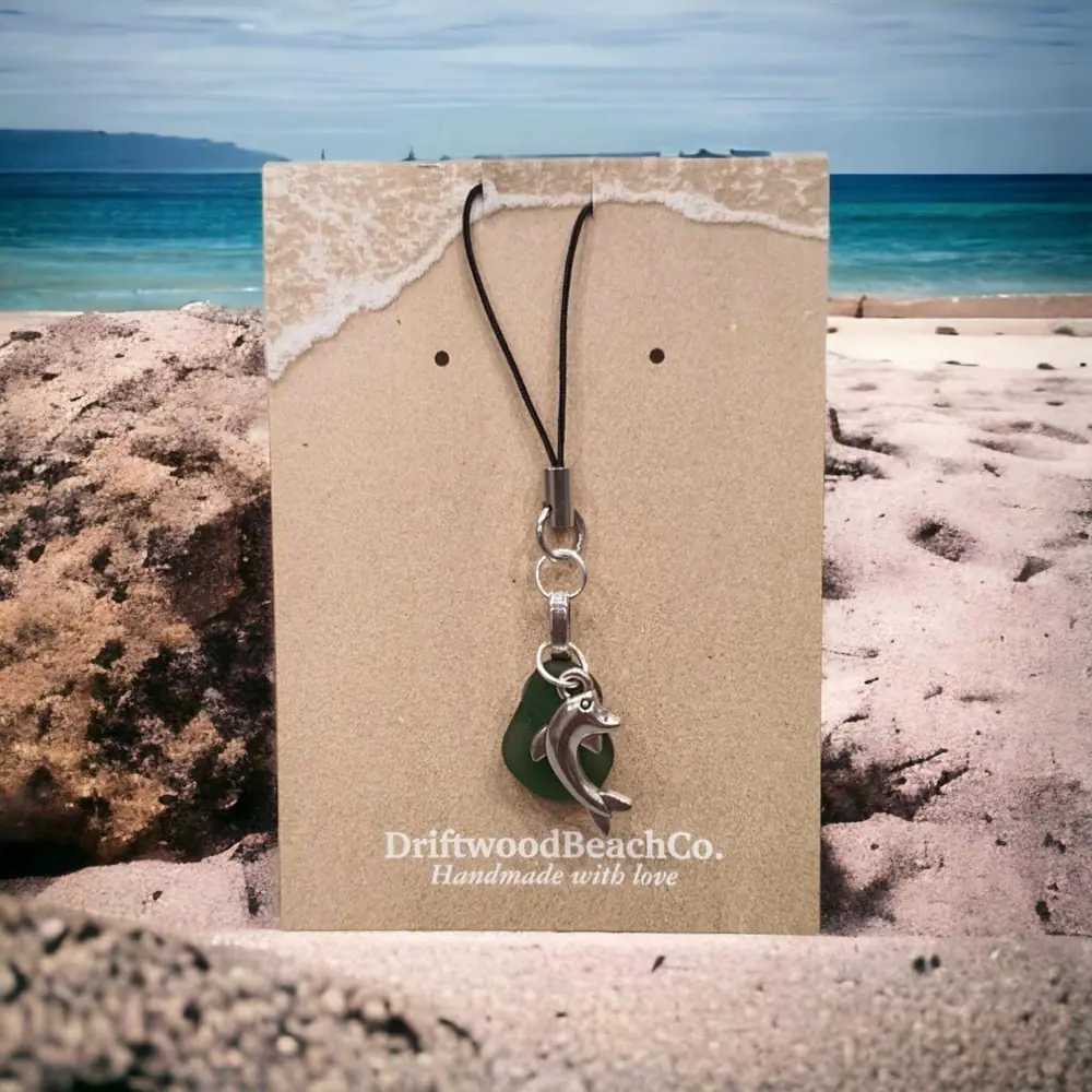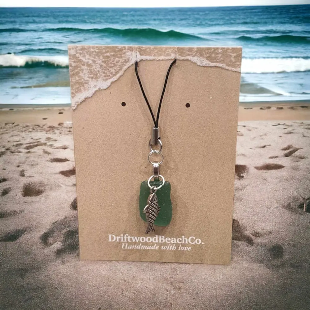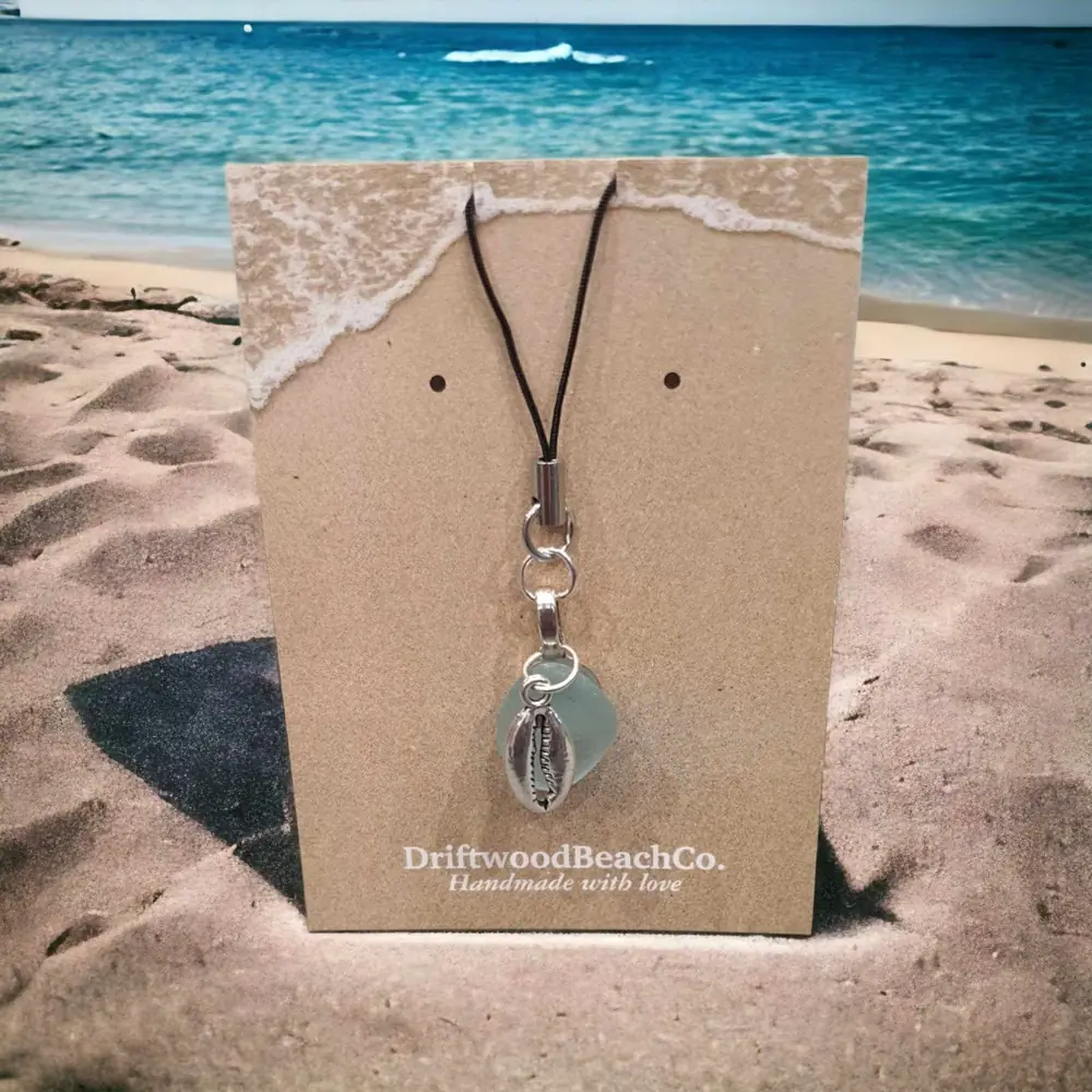 Unique handcrafted Mobile Phone Charm. Choice of Colour and Choice of Sea life Charm just choose in the drop down boxes. Genuine beach combed sea glass from the shores of Kent UK