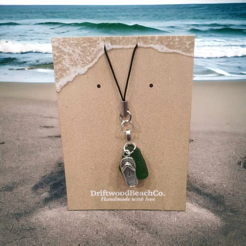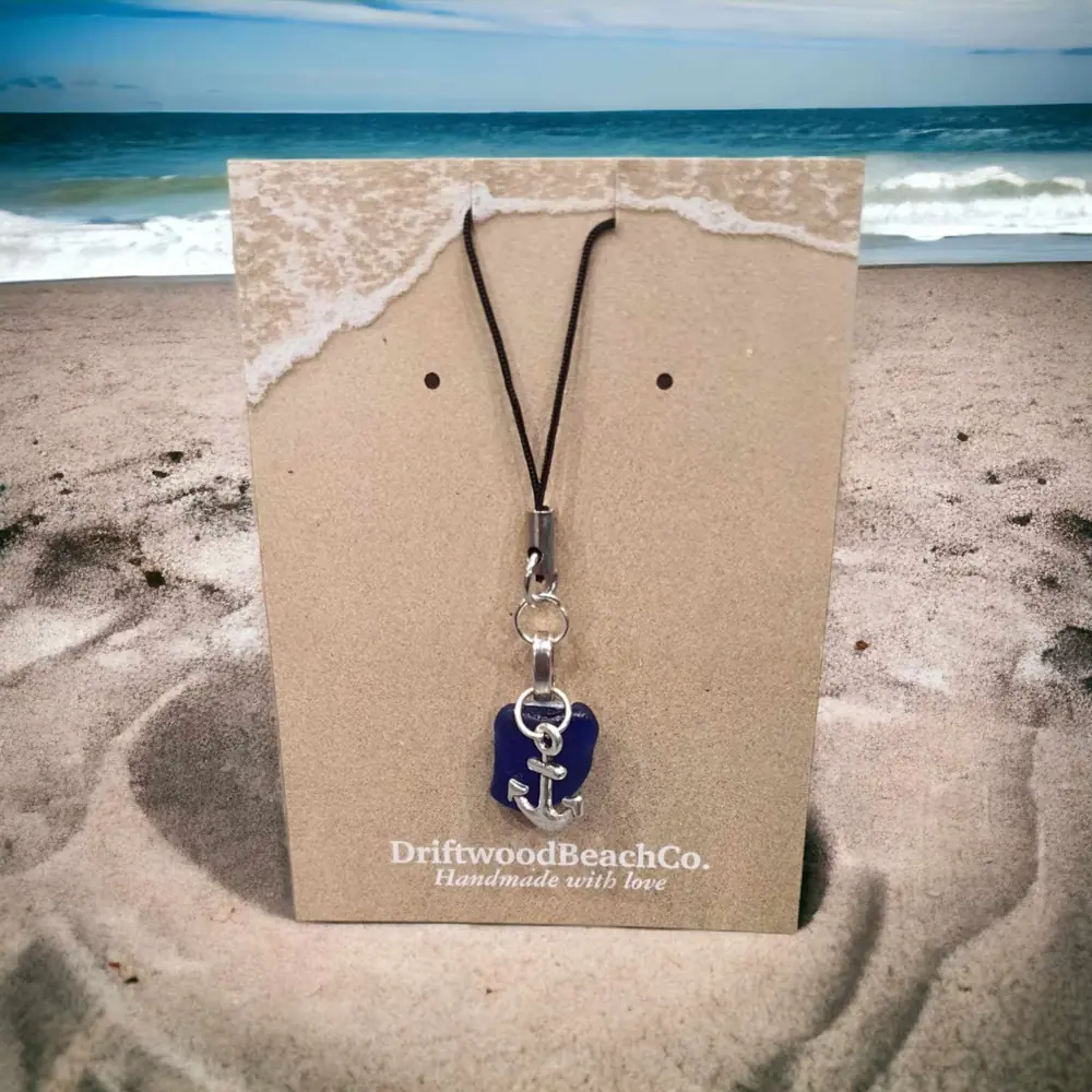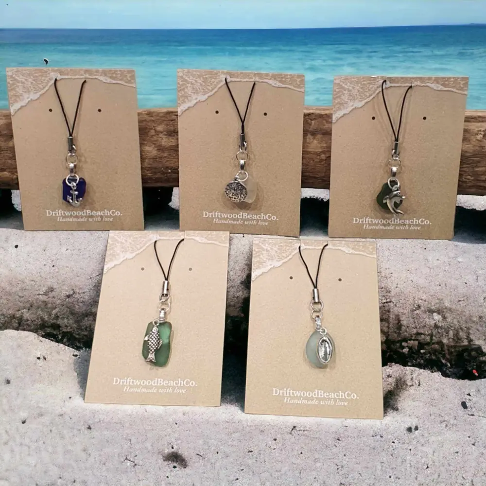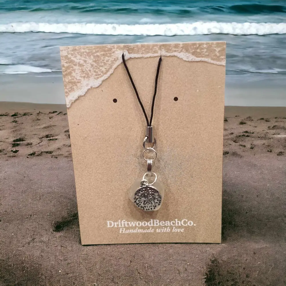 Unique handcrafted Mobile Phone Charm. Choice of Colour and Choice of Sea life Charm just choose in the drop down boxes. Genuine beach combed sea glass from the shores of Kent UK