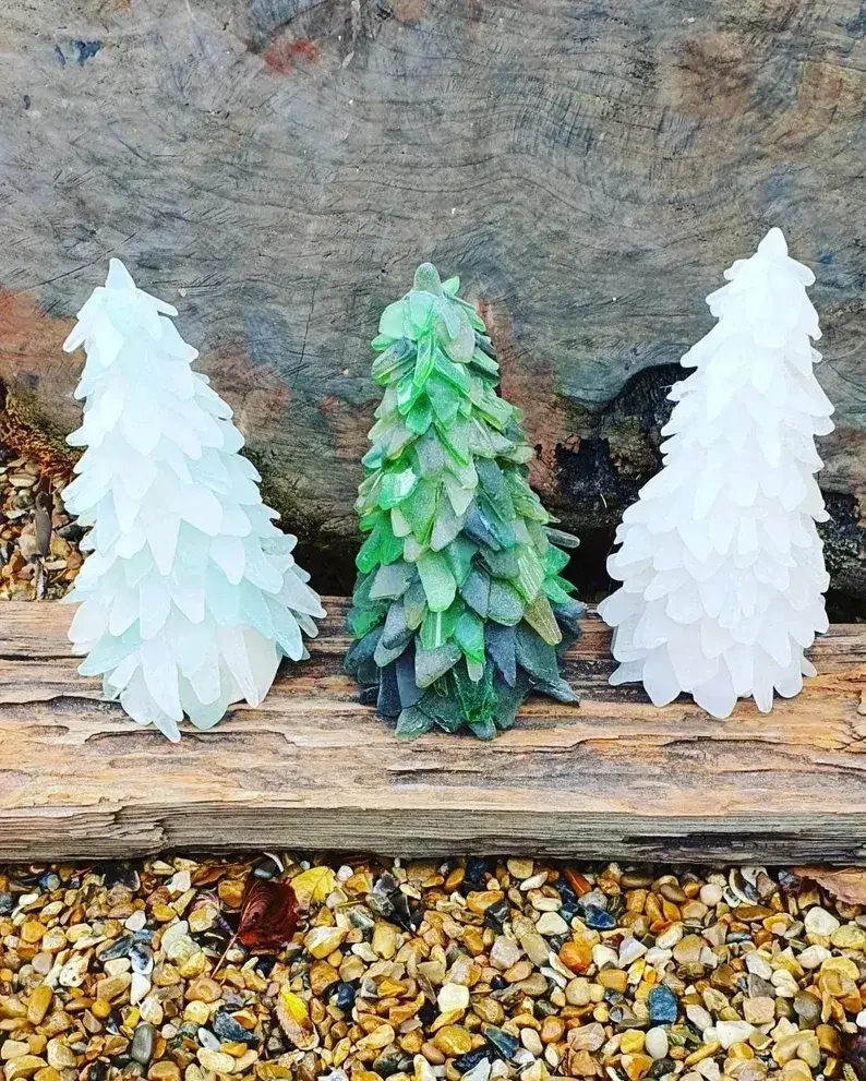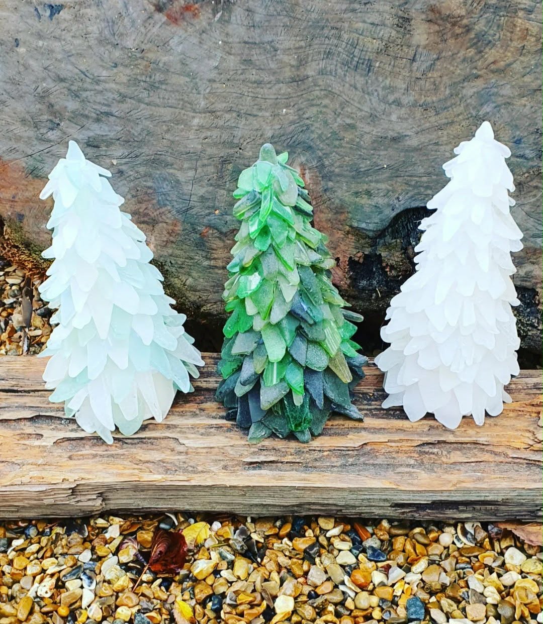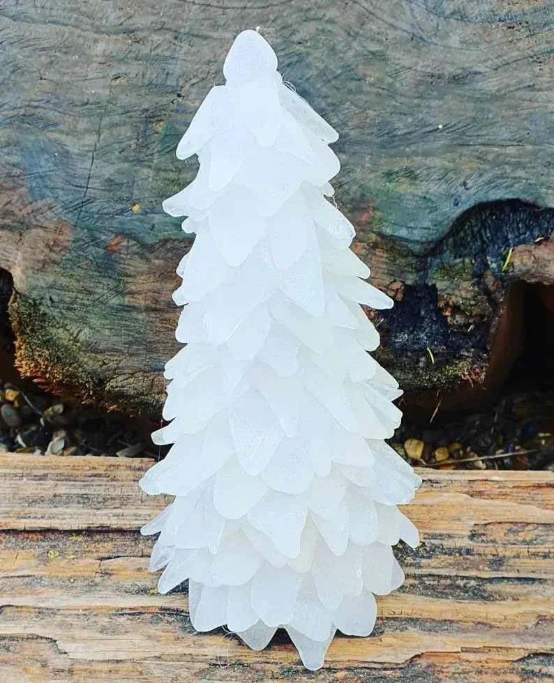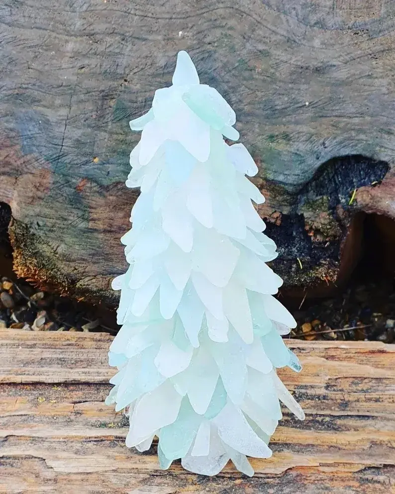 Beautiful handcrafted genuine sea glass tree. Available in Frosty White or Sea foam Green, Ice Aqua & Frosty White combo or Green. It stands 8″ tall and is 4″ wide at the base. These 8″ high sea glass trees weigh approximately 600g – 700g each…