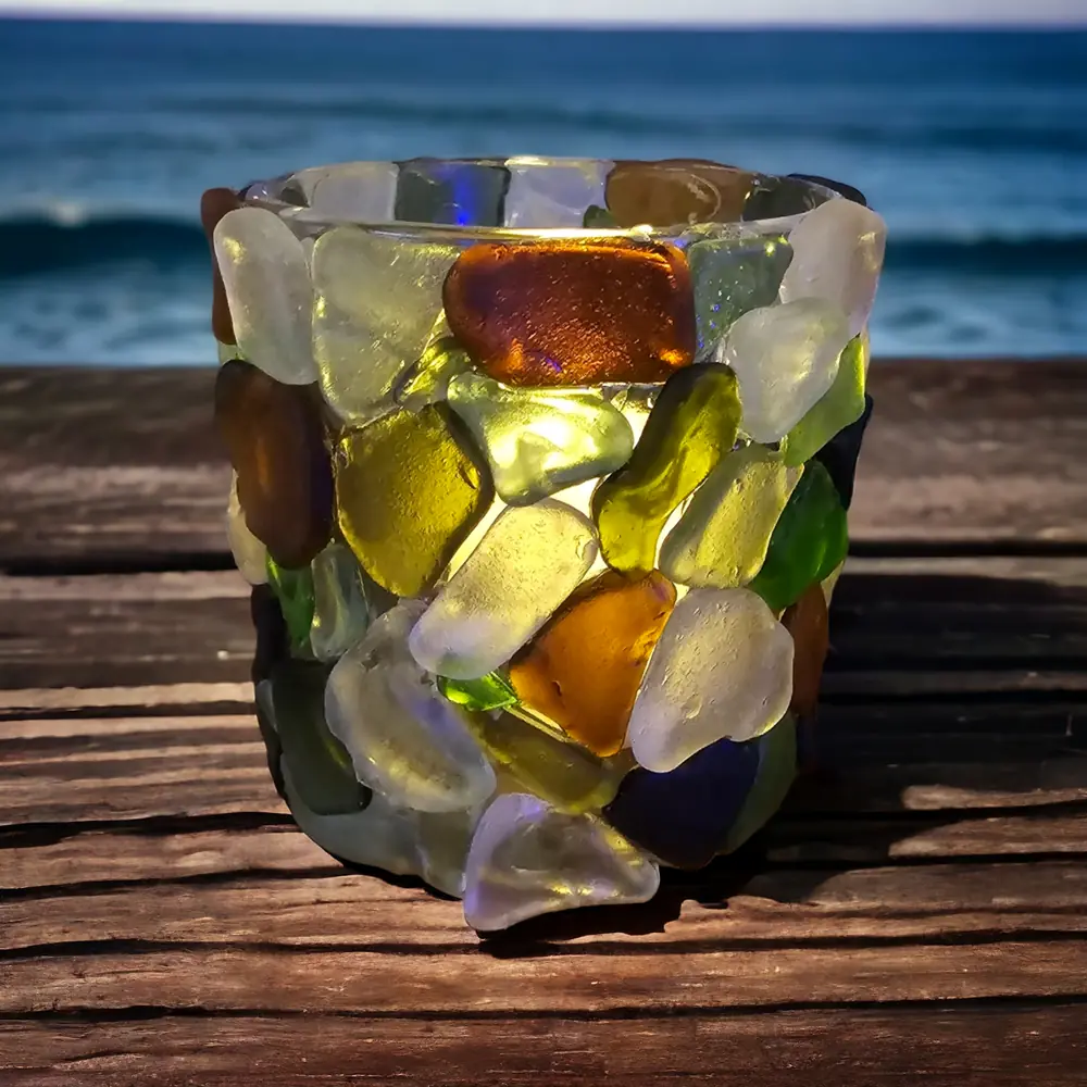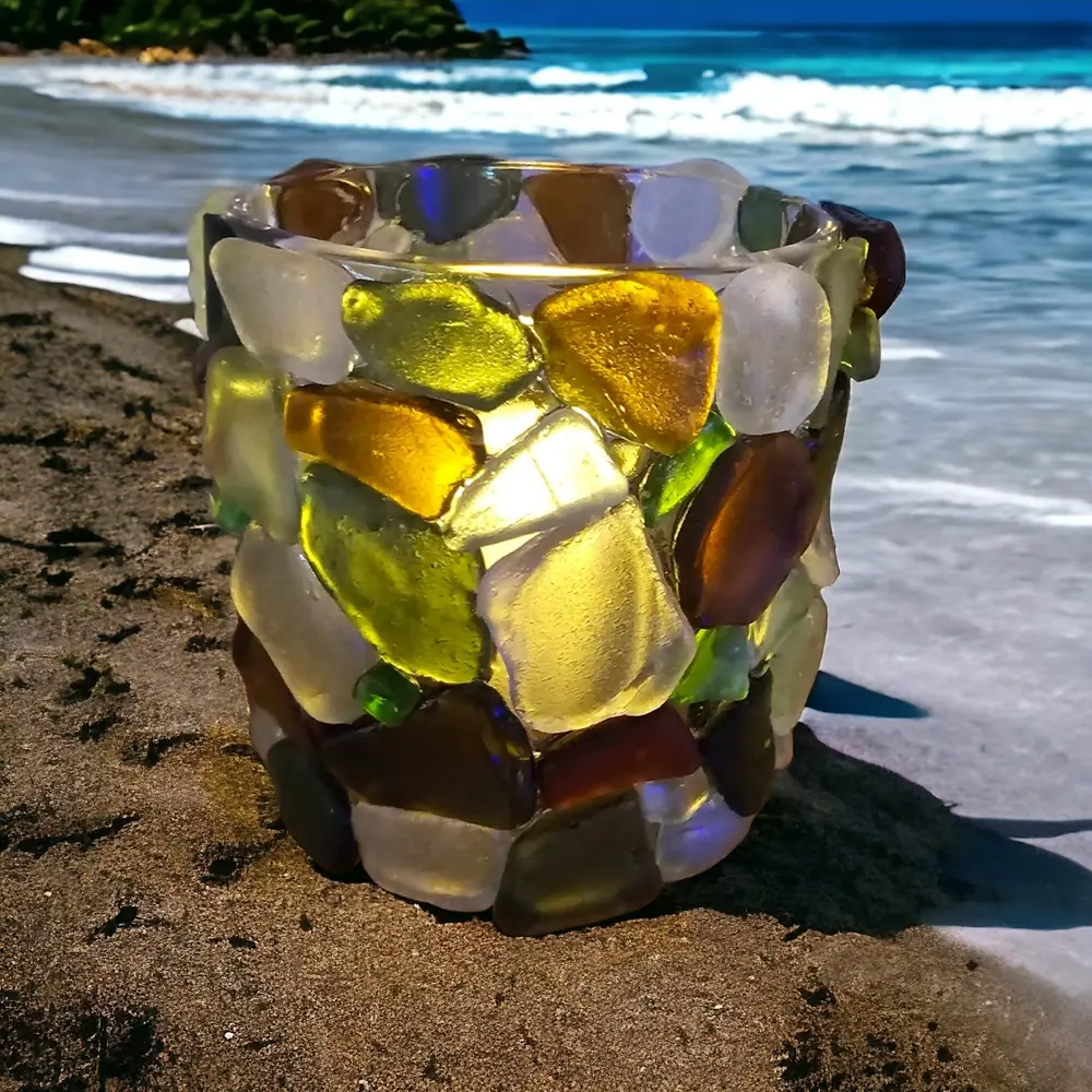 Beautiful handcrafted seaglass candle holder.