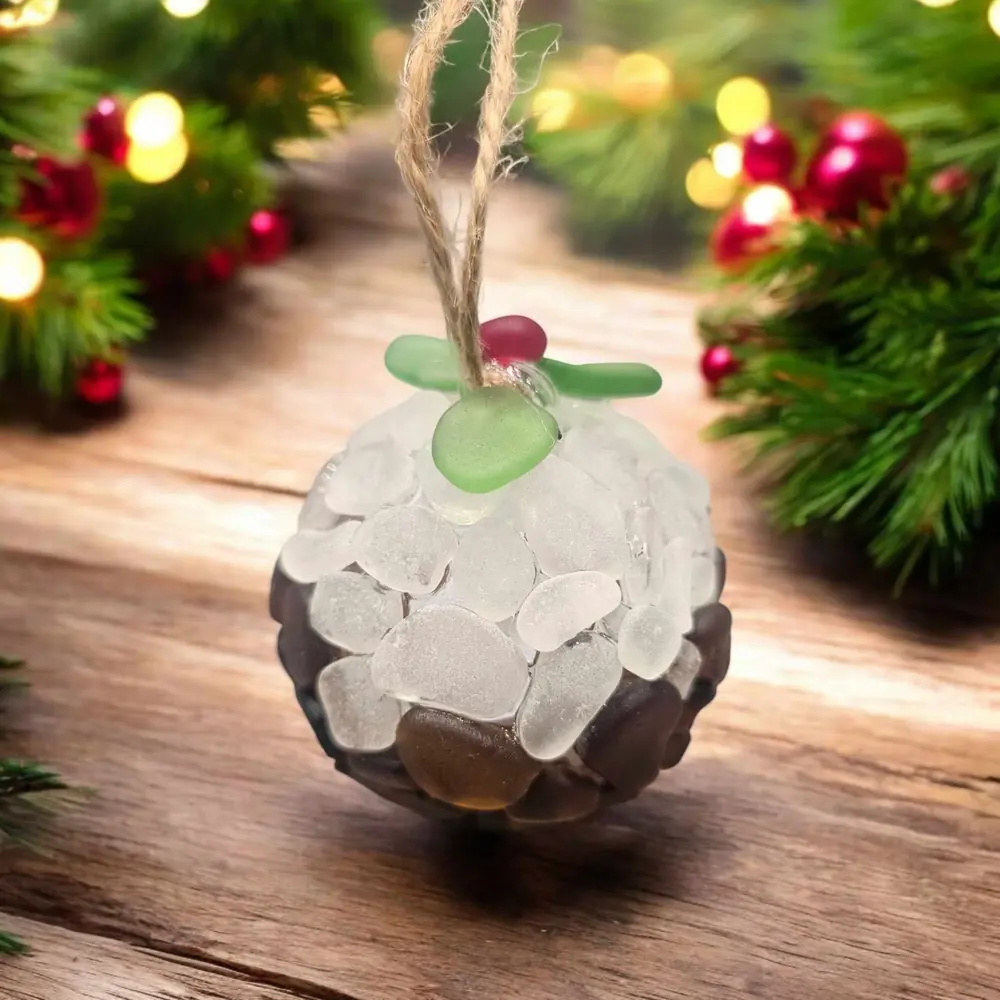 Add this Seaglass Christmas Pudding Ornament to your seasonal decor for a unique, coastal-inspired twist on holiday traditions. Perfect for gifting or as a charming addition to your own decorations.