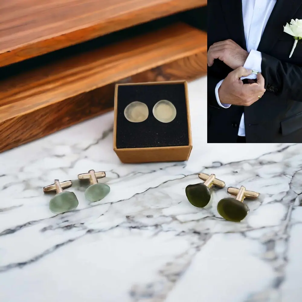 Make your wedding day extra special with these bespoke Seaglass Cufflinks, perfect for the groom or groomsmen as wedding day gifts.