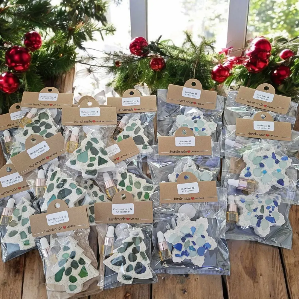Our Seaglass Scented Air Fresheners are not just decorative—they’re a multisensory delight. Whether adorning your tree or car, they add an unforgettable festive touch to your celebrations.