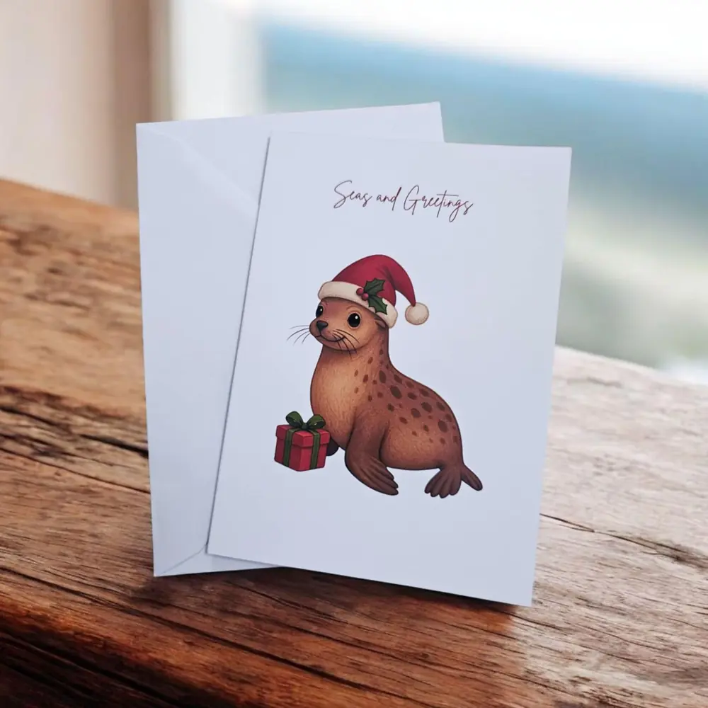 Sea’s and Greetings Coastal Christmas Cards A6 Glossy Card Stock Make a splash this Christmas with these unique Sea’s and Greetings Christmas Cards, designed and created by DriftwoodBeachCo. Perfect for ocean lovers, coastal souls, and anyone who wants to send festive wishes with a nautical twist…