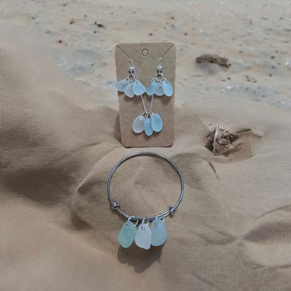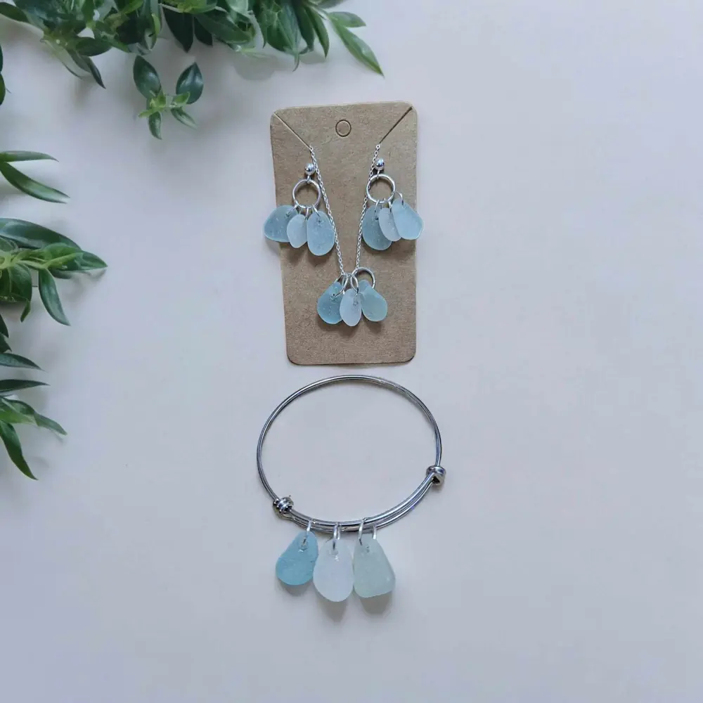Embrace the mesmerizing hues of the sea with our Triple Colour Seaglass Jewellery Set!